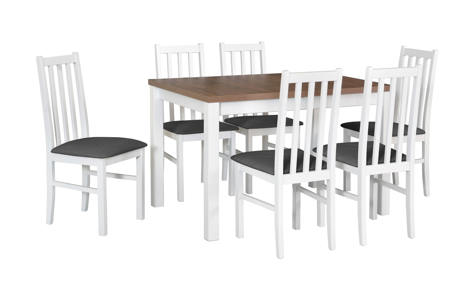 Jídelní set STRAKOŠ Fridrich je vhodný pro 4-8 osob, je sestaven z rozkládacího stolu STRAKOŠ MA V a 4 židlí STRAKOŠ B X. Je možné si dokoupit libovolné množství židlí. Stůl STRAKOŠ MA V je stůl rozkládací určený do restaurací, hotelů i domácností. Tento rozkládací stůl je pevný a stabilní. je v rozměrech, délka ve složeném stavu 120 cm a v rozloženém stavu je 150 cm, šířka stolu 80 cm a výška stolu je 78 cm. Konstrukce stolu je vyrobena z bukového dřeva a deska stolu z lamina. Stůl má obdélníkový tvar. Židle STRAKOŠ B X je židle do restaurací, hotelů i domácností. Tato židle je velice pevná a také přiměřeně lehká cca 5 kg. Tato židle je v rozměrech, výška opěradla 94 cm, výška sedací plochy židle s čalouněným sedákem je 47 cm (s lakovaným ne čalouněným sedákem 45 cm), hloubka je 40 cm, šířka židle je 43 cm. Židle B X je vyrobena z masívu bukového dřeva. Varianta se sedákem nečalouněným Jídelní židle STRAKOŠ B X-D. Jídelní set Vám umíme dodat v libovolné barevné kombinaci dle dostupných variant. Zobrazení barev se může lišit dle nastavení Vašeho elektronického zařízení a není důvodem k reklamaci. Set je dodáván v celku, pouze nohy stolu jsou demontovány.