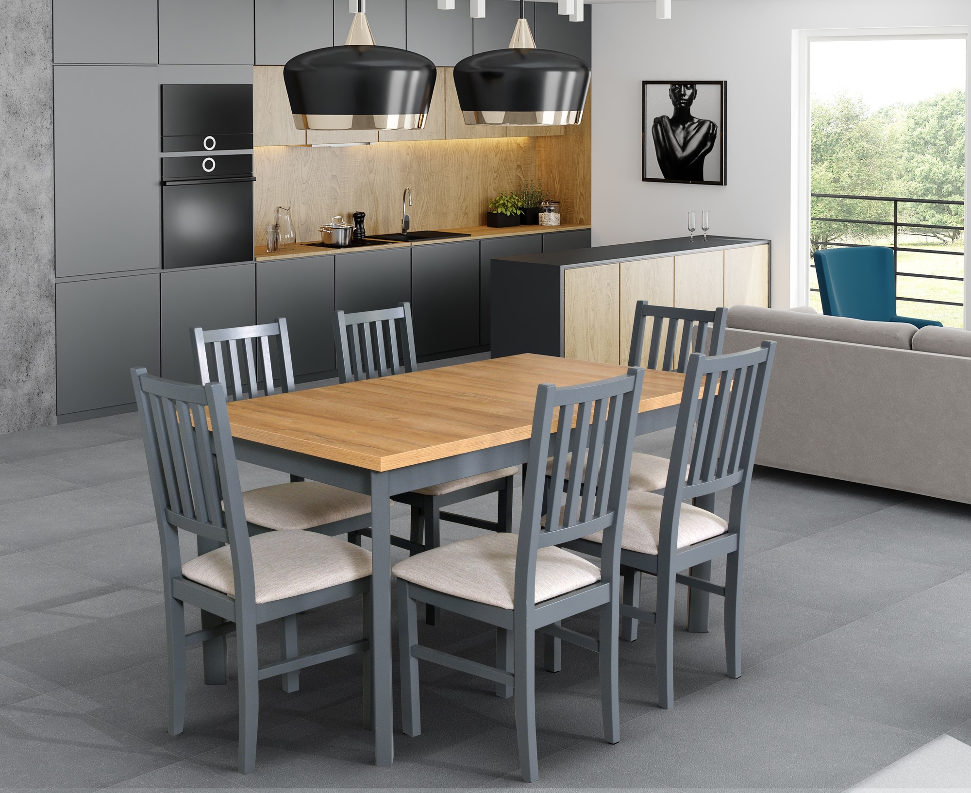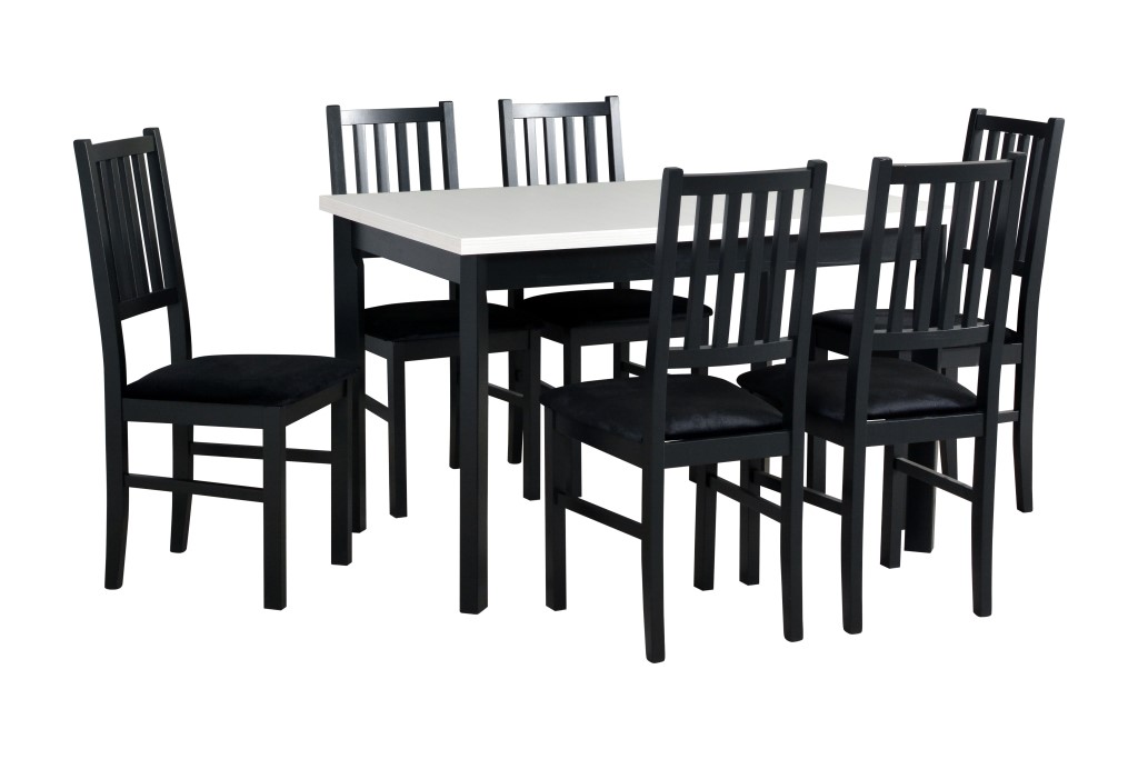 Jídelní set STRAKOŠ MA V-P a N VII je vhodný pro 4-8 osob, je sestaven z rozkládacího stolu STRAKOŠ MA V-P a 6-ti židlí STRAKOŠ N VII. Je možné si dokoupit libovolné množství židlí. Stůl STRAKOŠ MA V-P je stůl rozkládací určený do restaurací, hotelů i domácností. Tento rozkládací stůl je pevný a stabilní. Je v rozměrech, délka ve složeném stavu 120 cm a v rozloženém stavu je 150 cm, šířka stolu 80 cm a výška stolu je 78 cm. Konstrukce stolu je vyrobena z bukového dřeva a deska stolu z lamina. Stůl má obdélníkový tvar. Židle STRAKOŠ N VII je židle do restaurací, hotelů, i domácností. Tato židle je velice pevná a také přiměřeně lehká cca 6kg. Tato židle je v rozměrech, výška opěradla 94 cm, výška sedací plochy židle s čalouněným sedákem je 47 cm (s lakovaným ne čalouněným sedákem 44 cm), hloubka je 40 cm, šířka židle je 43 cm. Židle N VII je vyrobena z masívu bukového dřeva. Varianta se sedákem nečalouněným Jídelní židle STRAKOŠ N VII-D. Jídelní set Vám umíme dodat v libovolné barevné kombinaci dle dostupných variant. Zobrazení barev se může lišit dle nastavení Vašeho elektronického zařízení a není důvodem k reklamaci. Set je dodáván v celku, pouze nohy stolu jsou demontovány.
