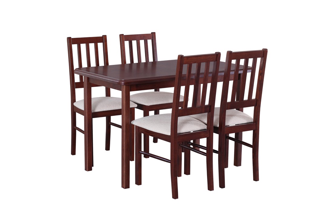 Jídelní stůl STRAKOŠ MA IV je rozkládací stůl určený do restaurací, hotelů i domácností. Tento rozkládací stůl stůl je pevný a stabilní. Konstrukce stolu je vyrobena z masívu bukového dřeva, deska stolu je z lakovaného MDF v bílé barvě nebo v dýze v odstínu ořech, olše, kaštan, wenge a dub přírodní se zaoblenými rohy. Stůl je v rozměru: délka ve složeném stavu je 120 cm a délka v rozloženém stavu 150 cm, šířka stolu je 70 cm, výška 76 cm. Tento stůl Vám umíme dodat v libovolném barevném provedení dle dostupných variant. Zobrazení barev se může lišit dle nastavení Vašeho elektronického zařízení a není důvodem k reklamaci. Stůl je dodáván v celku, pouze nohy jsou demontovány. K tomuto stolu jsou vhodné tyto jídelní židle. Podívejte se také na tento stůl jako součást jídelních setů Kvido, MA IV a B IV, MA IV a B VII.