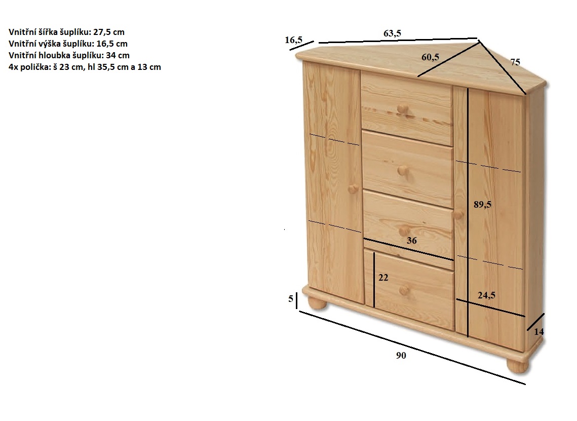 Komoda STRAKOŠ KD 134Komoda STRAKOŠ KD 134 je dřevěná komoda určena k vybavení vašich ložnic, pokojů, dětských pokojů, chodeb, šaten ale i hotelových pokojů. Tato dřevěná komoda je vyrobena z kvalitně opracovaného 100 % přírodního dřeva masívu borovice, můžeme vám ji dodat v barevném provedení dle vzorníku: přírodní borovice - lakovaná (ekologickým lakem), olše, dub, ořech a šedá. Tyto komody se vyznačují pečlivým zpracováním a dlouhou životností.Komoda je v rozměrech: šířka 74 cm, výška 100 cm, hloubka 74 cm.