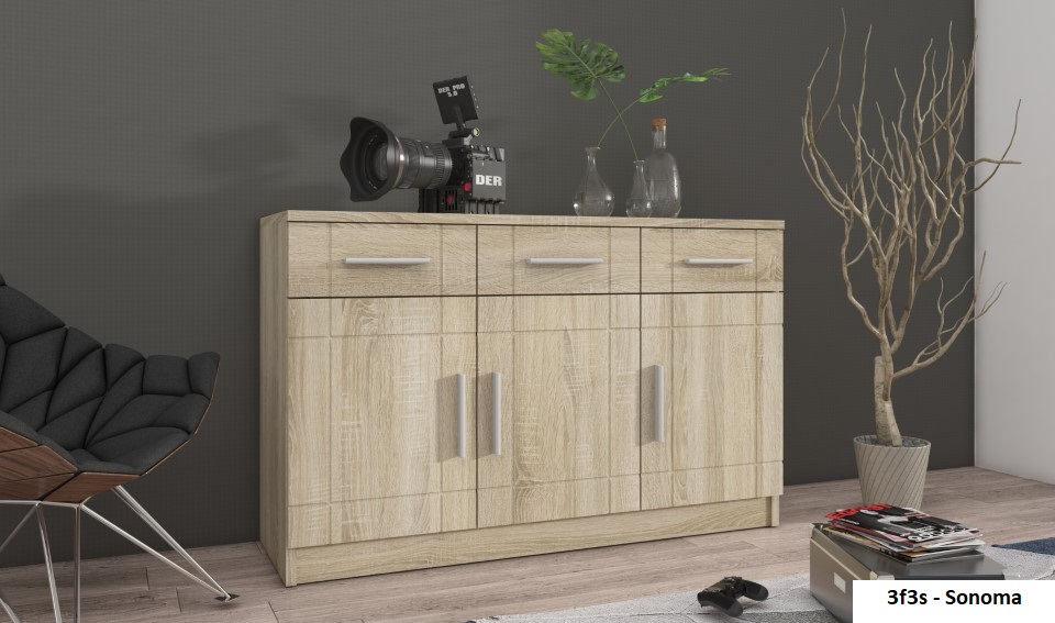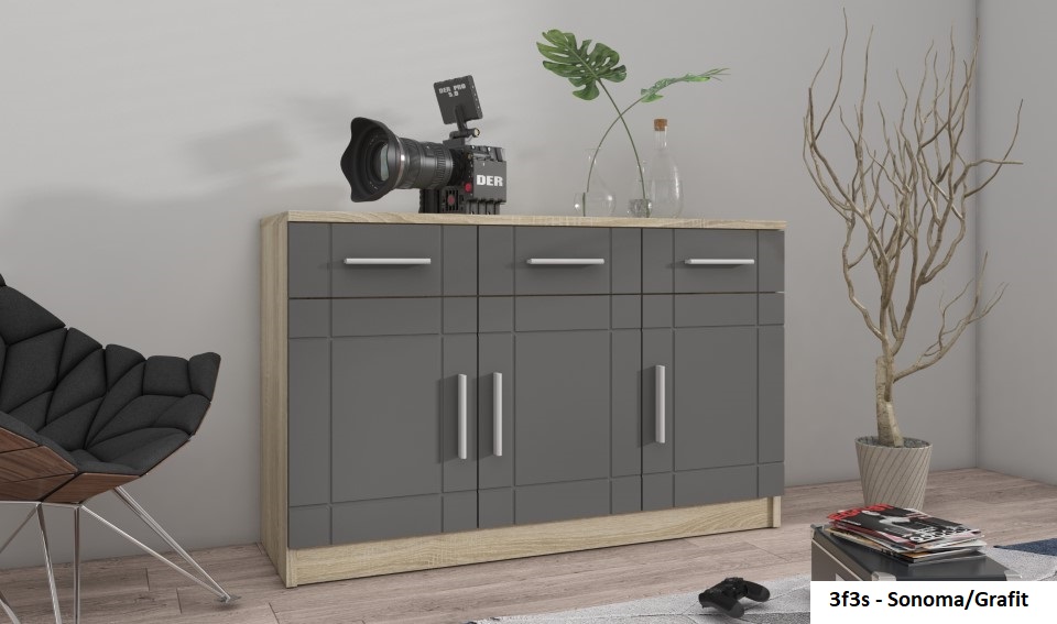 Komoda STRAKOŠ PAR 3F3SKomoda STRAKOŠ PAR 3F3S je určena k vybavení ložnic, pokojů, předsíní, šaten, ale i hotelových pokojů. Rozměry: 1034 x 700 x 370 mm (šířka x výška x hloubka) Počet balíků: 2 Hmotnost: 20 kg Materiál: laminovaná deska 16 mm, melaminový okraj, úchytky plastové 128 mm, zadní stěna HDF deska K této komodě je vhodná obývací stěna STRAKOŠ PAR. Komoda je dodávána v demontu, montáž je jednoduchá dle přiloženého plánku.