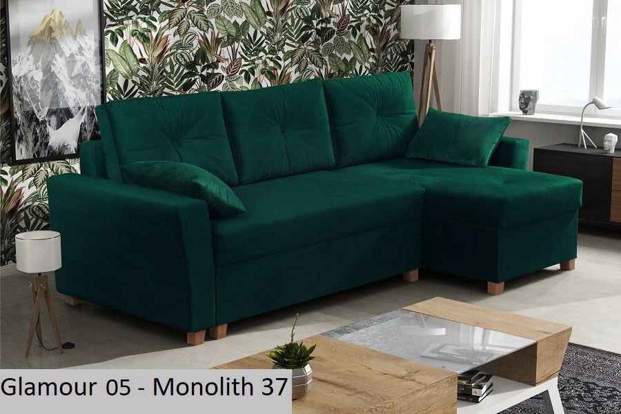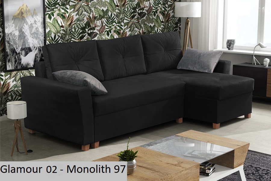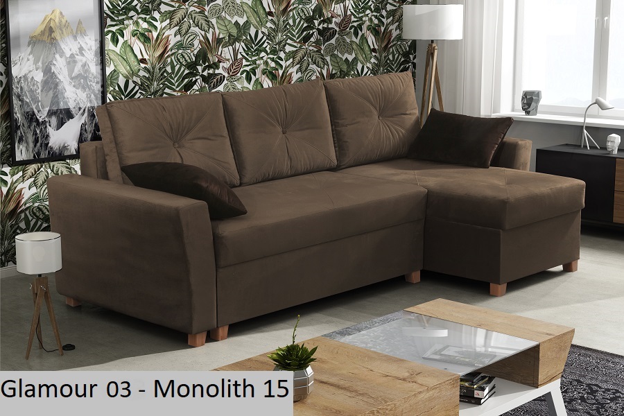 Sedací souprava STRAKOŠ GlamourSedací souprava STRAKOŠ Glamour je velice pohodlná, elegantní a praktická rozkládací sedací souprava určená ke každodennímu spaní. Tato rozkládací sedací souprava je vybavená pružinovým rozkládacím mechanismem a dvěma úložnými prostory. Je v rozměrech: šířka 240 cm, hloubka 141 cm, výška opěradla 72 cm (bez polštářů), výška opěradla (včetně polštářů) je 88 cm, výška sedací plochy 47 cm, prostor pro spaní po rozložení 200x138 cm. Výplň sedací soupravy tvoří kombinace kvalitních bonell pružin a komfortní vysoko elastické PUR pěny T 30. K očalounění jsou použité profesionální potahové materiály MONOLITH (water repellent - vodo odpudivý). Sedací souprava je kvalitně prošitá a je pohodlná. K této sedací soupravě je možnost dokoupit Pohovku STRAKOŠ Glamour a Křeslo STRAKOŠ Glamour.