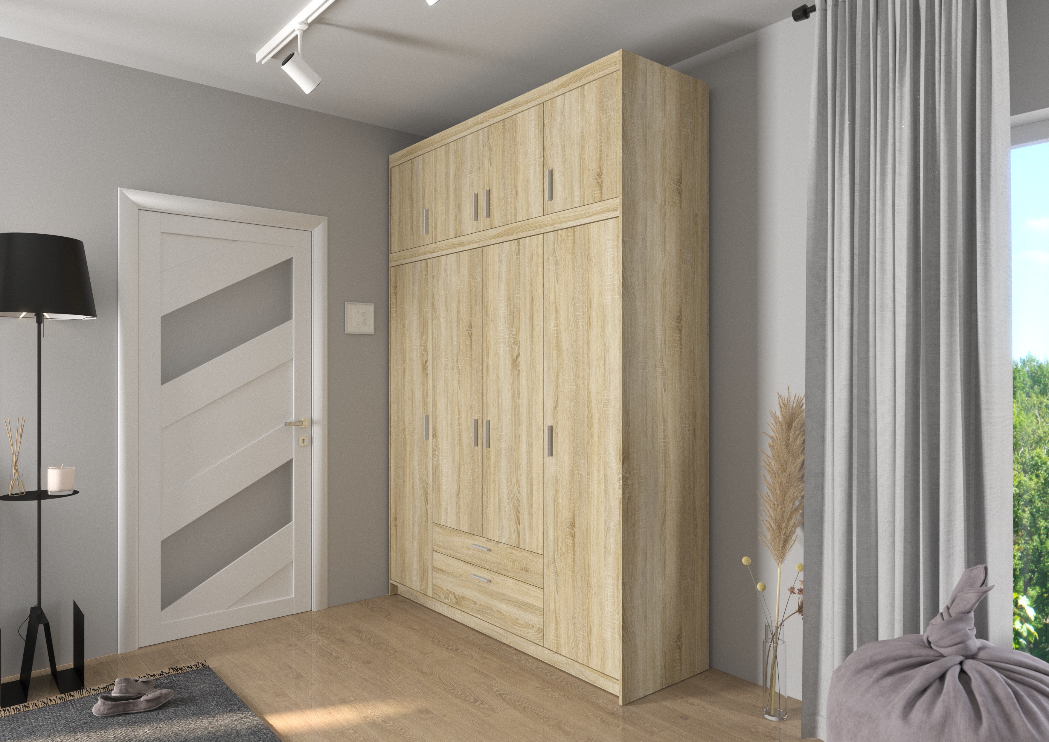 Skříň STRAKOŠ EL 4DSkříň STRAKOŠ EL 4D je určena k vybavení ložnic, pokojů, předsíní, šaten, ale i hotelových pokojů.Rozměry: 1763 x 1905 x 530 mm (šířka x výška x hloubka) Počet balíků: 4 Hmotnost: 146 kg Materiál: laminovaná deska 16 mm, melaminový okraj, úchytky plastové 128 mm, zadní stěna HDF deska K této skříni je možné si přiobjednat nástavec STRAKOŠ EL 4D a skříňový kontejner STRAKOŠ EL. Skříň je dodávána v demontu, montáž je jednoduchá dle přiloženého návodu.