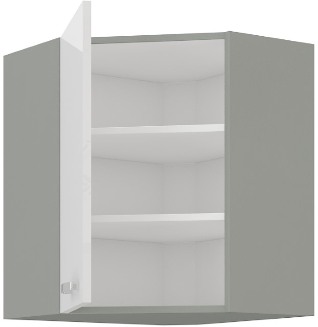 Kuchyňská skříňka STRAKOŠ BIA B-15 - moderní dřevěná kuchyňská závěsná rohová skříňka je určena k vybavení vašich kuchyní a jídelen. Lze ji použít jako horní skříňku při sestavování kuchyňské linky. Dvířka jsou opatřeny panty s tlumičem tichého zavírání, můžete je instalovat jako pravé nebo levé.Skříňka je v barevné kombinaci světlé šedé (mat) Platinum Grey - korpus a bílé (vysoký lesk) - dvířka. Vnitřek skřínky je bílý. U úchytek se jedná o leštěný chromový kov, rozteč 128 mm, délka 135 mm.Skříňka je v rozměrech: 59,9/59,9 x 715 x 310 mm (Š x V x H).Kuchyňská skříňka je dodávána v demontu (1 balík), montáž je jednoduchá dle přiloženého návodu.Pro výběr pracovní desky klikněte zde: pracovní desky.Pro zobrazení všech komponentů klikněte zde: komponenty BIA.Skříňku lze objednat samostatně, nebo jako součást kuchyňské linky. Tyto dřevěné kuchyňské skříňky jsou vyrobeny z kvalitně opracované laminované dřevotřískové desky tloušťky 16 mm s 1 mm ABS hranou.