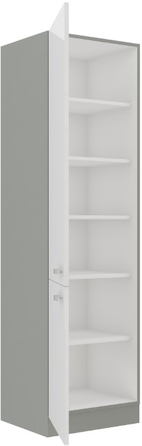 Kuchyňská skříňka STRAKOŠ BIA B-20 - moderní dřevěná kuchyňská skříňka je určena k vybavení vašich kuchyní a jídelen. Lze ji použít jako jednu ze skříněk při sestavování kuchyňské linky. Součástí skříňky jsou 4 police. Dvířka jsou opatřeny panty s tlumičem tichého zavírání, můžete je instalovat jako pravé nebo levé, úchytky je možné namontovat vodorovně nebo svisle.Skříňka je v barevné kombinaci světlé šedé (mat) Platinum Grey - korpus a bílé (vysoký lesk) - dvířka. Vnitřek skřínky je bílý. U úchytek se jedná o leštěný chromový kov, rozteč 128 mm, délka 135 mm.Skříňka je v rozměrech: 600 x 2100 x 570 mm (Š x V x H)Kuchyňská skříňka je dodávána v demontu (2 balíky), montáž je jednoduchá dle přiloženého návodu.Pro zobrazení všech komponentů klikněte zde: komponenty BIA.Skříňku lze objednat samostatně, nebo jako součást rohové kuchyňské linky. Tyto dřevěné kuchyňské skříňky jsou vyrobeny z kvalitně opracované laminované dřevotřískové desky tl. 16 mm s 1 mm ABS hranou.