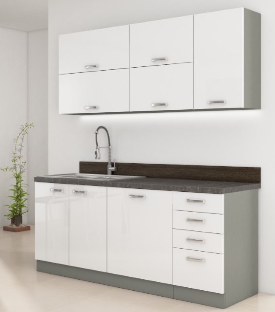 Kuchyňská skříňka STRAKOŠ BIA B-13 - moderní dřevěná závěsná kuchyňská skříňka je určena k vybavení vašich kuchyní a jídelen. Lze ji použít jako horní skříňku při sestavování kuchyňské linky. Vyklopná dvířka jsou opatřena plynovými písty.Skříňka je v barevné kombinaci světlé šedé (mat) Platinum Grey - korpus a bílé (vysoký lesk) - dvířka. Vnitřek skřínky je bílý. U úchytek se jedná o leštěný chromový kov, rozteč 128 mm, délka 135 mm.Skříňka je v rozměrech: 600 x 360 x 310 mm (Š x V x H)Kuchyňská skříňka je dodávána v demontu (1 balík), montáž je jednoduchá dle přiloženého návodu.Pro zobrazení všech komponentů klikněte zde: komponenty BIA.Tyto dřevěné kuchyňské skříňky jsou vyrobeny z kvalitně opracované laminované dřevotřískové desky tl. 16 mm s 1 mm ABS hranou.