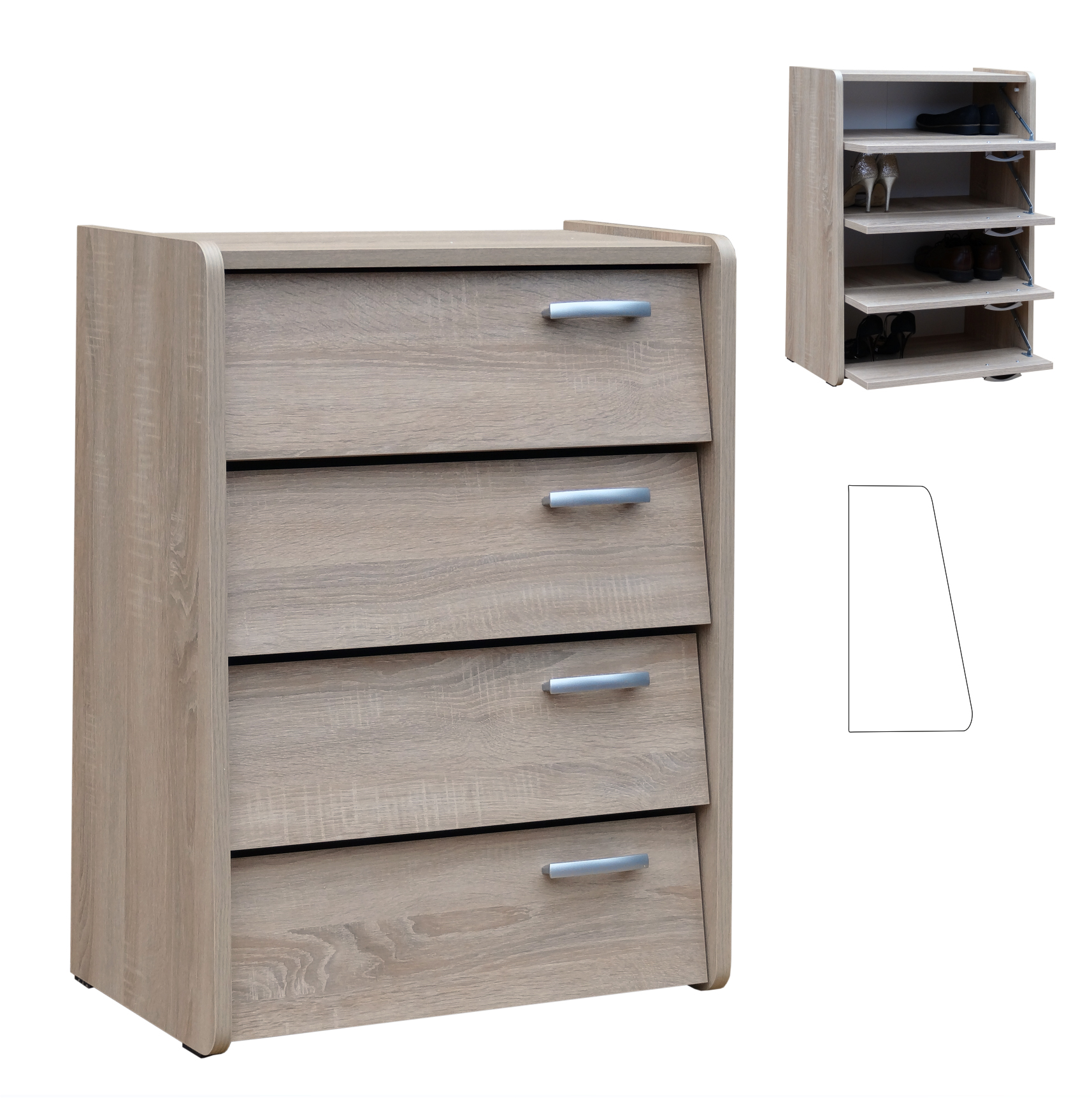 Botník STRAKOŠ AS 152Botník STRAKOŠ AS 152 je vhodný do všech typů předsíní, chodeb v domácnostech, ale i do hotelů a penziónů.Rozměry: 600 x 790 x 350 mm (šířka x výška x hloubka) Botník má výklopná dvířka, čtyři přihrádky se spoustou úložného prostoru. Z prezentovaných barevných vzorů lamino desek síly 18 mm je možné zvolit libovolnou barevnou kombinaci korpusu a úchytek.Zobrazení barev se může lišit dle nastavení Vašeho elektronického zařízení a není důvodem k reklamaci.Botník je dodáván v demontu, montáž je jednoduchá dle přiloženého návodu.Počet balíků: 1