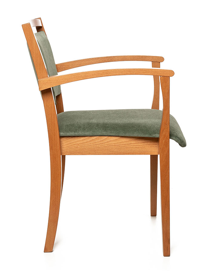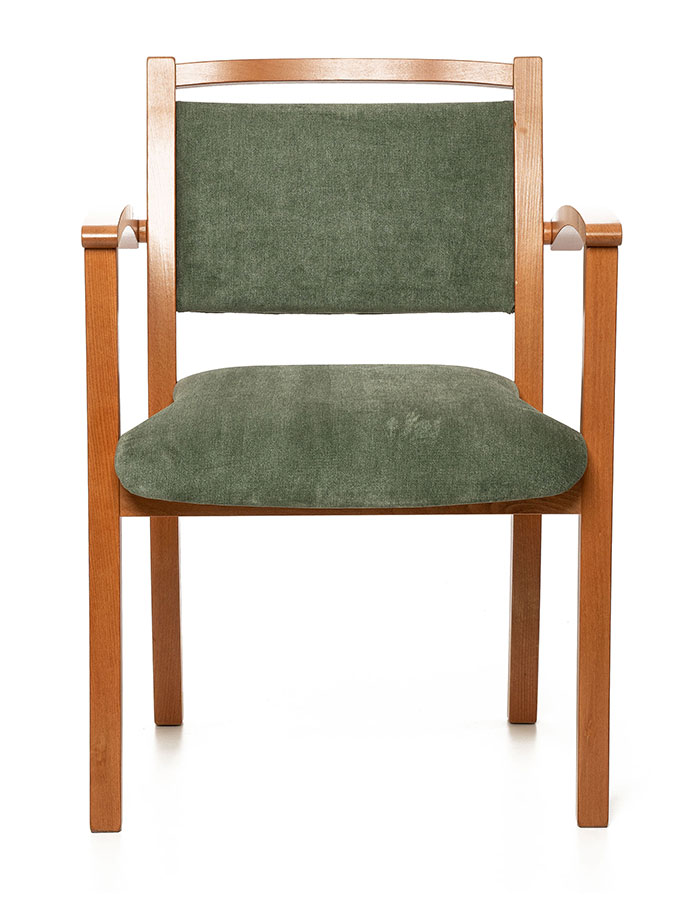Židle stohovatelná s područkami STRAKOŠ DF2 je zátěžová židle do restaurací, hotelů i domácností. Tato židle je velice pevná, vyrobena z bukového dřeva a dodávána v celku - nic se po dodání nešroubuje ani nelepí. K povrchové úpravě dřeva jsou použity ekologické materiály, které jsou šetrné k životnímu prostředí i zdraví. K čalounění těchto židlí jsou použité zátěžové potahové látky, které splňují náročné podmínky pro provoz v restauracích. Židle je stohovatelná. Počet naskládaných kusů do stohu může být 3 ks. Židle je v rozměrech: výška opěradla 82 cm, výška sedací plochy 47 cm, výška područek 67 cm, šířka 58 cm, hloubka 49 cm. Tuto židli Vám umíme dodat v libovolné barevné kombinaci dle vzorníku. Vzhledem k tomu, že barevné provedení bílá je technologicky náročnější, je v tomto barevném provedení příplatek.