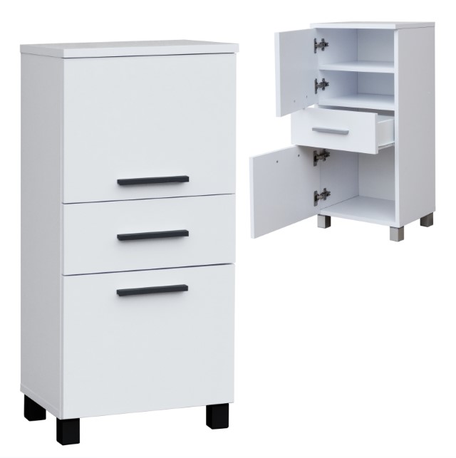 Koupelnová skříňka STRAKOŠ AS 822Skříňka se dvěma dvířky je rozdělena praktickým šuplíkem, přičemž horní část je s policí a spodní část je bez police. Skříňka má 18mm laminovanou desku se zvýšenou odolností proti poškrábání.Tuto skříňku Vám umíme dodat v libovolné kombinaci dle dostupných variant.Kromě barvy lamina si můžete také zvolit barvu úchytek a výškově nastavitelných nožek.Rozměry: 400 x 850 x 300 mm (šířka x výška x hloubka) Otevírání: Pravé nebo Levé + 1x šuplíkZobrazení barev se může lišit dle nastavení Vašeho elektronického zařízení a není důvodem k reklamaci.Skříňka je dodávána v demontu, montáž je jednoduchá dle přiloženého návodu.
