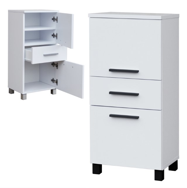 Koupelnová skříňka STRAKOŠ AS 823Skříňka se dvěma dvířky je rozdělena praktickým šuplíkem, přičemž horní část je s policí a spodní část je bez police. Skříňka má 18mm laminovanou desku se zvýšenou odolností proti poškrábání.Tuto skříňku Vám umíme dodat v libovolné barevné kombinaci dle dostupných variant.Kromě barvy lamina si můžete také zvolit barvu úchytek a výškově nastavitelných nožek.Rozměry: 300x 850 x 300 mm (šířka x výška x hloubka) Otevírání: Pravé nebo Levé + 1x šuplíkZobrazení barev se může lišit dle nastavení Vašeho elektronického zařízení a není důvodem k reklamaci.Skříňka je dodávána v demontu, montáž je jednoduchá dle přiloženého návodu.