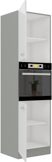 Kuchyňská skříňka STRAKOŠ BIA B-17 - moderní dřevěná kuchyňská skříňka je určena k vybavení vašich kuchyní a jídelen. Obsahuje 2 police a prostor pro umístění vestavné trouby. Lze ji použít jako jednu ze skříněk při sestavování kuchyňské linky. Dvířka jsou opatřeny panty s tlumičem tichého zavírání, můžete je instalovat jako pravé nebo levé, úchytky je možné namontovat vodorovně nebo svisle. Skříňka je v barevné kombinaci světlé šedé (mat) Platinum Grey - korpus a bílé (vysoký lesk) - dvířka. Vnitřek skříňky je bílý. U úchytek se jedná o leštěný chromový kov, rozteč 128 mm, délka 135 mm.Skříňka je v rozměrech: 600 x 2100 x 570 mm (Š x V x H)Kuchyňská skříňka je dodávána v demontu (2 balíky), montáž je jednoduchá dle přiloženého návodu.Pro zobrazení všech komponentů klikněte zde: komponenty BIA.Tyto dřevěné kuchyňské skříňky jsou vyrobeny z kvalitně opracované laminované dřevotřískové desky tl. 16 mm s 1 mm ABS hranou.