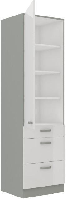 Kuchyňská skříňka STRAKOŠ BIA B-21 - moderní dřevěná kuchyňská skříňka je určena k vybavení vašich kuchyní a jídelen. Lze ji použít jako jednu ze skříněk při sestavování kuchyňské linky. Součástí skříňky jsou 3 police a 3 šuplíky s plným výsuvem a tichým dovíráním. Dvířka jsou opatřeny panty s tlumičem tichého zavírání, můžete je instalovat jako pravé nebo levé, úchytky je možné namontovat vodorovně nebo svisle.Skříňka je v barevné kombinaci světlé šedé (mat) Platinum Grey - korpus a bílé (vysoký lesk) - dvířka. Vnitřek skřínky je bílý. U úchytek se jedná o leštěný chromový kov, rozteč 128 mm, délka 135 mm.Skříňka je v rozměrech: 600 x 2100 x 570 mm (Š x V x H)Kuchyňská skříňka je dodávána v demontu (2 balíky), montáž je jednoduchá dle přiloženého návodu.Pro zobrazení všech komponentů klikněte zde: komponenty BIA.Tyto dřevěné kuchyňské skříňky jsou vyrobeny z kvalitně opracované laminované dřevotřískové desky tl. 16 mm s 1 mm ABS hranou.