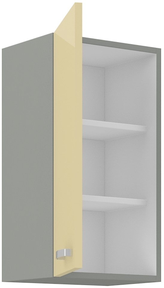 Kuchyňská skříňka STRAKOŠ K-CREAM K-16 - moderní dřevěná závěsná kuchyňská skříňka je určena k vybavení vašich kuchyní a jídelen. Lze ji použít jako horní skříňku při sestavování kuchyňské linky. Dvířka jsou opatřeny panty s tlumičem tichého zavírání, můžete je instalovat jako pravé nebo levé.Skříňka je v barevné kombinaci světlé šedé (mat) Platinum Grey - korpus a krémové (vysoký lesk) - dvířka. Vnitřek skřínky je bílý. U úchytek se jedná o leštěný chromový kov, rozteč 128 mm, délka 135 mm.Skříňka je v rozměrech: 400 x 715 x 310 mm (Š x V x H)Kuchyňská skříňka je dodávána v demontu (1 balík), montáž je jednoduchá dle přiloženého návodu.Pro zobrazení všech komponentů klikněte zde: komponenty K-CREAM.Skříňku lze objednat samostatně, nebo jako součást kuchyňské linky a rohové kuchyňské linky. Tyto dřevěné kuchyňské skříňky jsou vyrobeny z kvalitně opracované laminované dřevotřískové desky tl. 16 mm s 1 mm ABS hranou.
