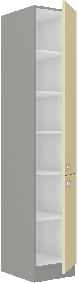Kuchyňská skříňka STRAKOŠ K-CREAM K-19 - moderní dřevěná kuchyňská skříňka je určena k vybavení vašich kuchyní a jídelen. Lze ji použít jako jednu ze skříněk při sestavování kuchyňské linky. Součástí skříňky jsou 4 police. Dvířka jsou opatřeny panty s tlumičem tichého zavírání, můžete je instalovat jako pravé nebo levé, úchytky je možné namontovat vodorovně nebo svisle.Skříňka je v barevné kombinaci světlé šedé (mat) Platinum Grey - korpus a krémové (vysoký lesk) - dvířka. Vnitřek skřínky je bílý. U úchytek se jedná o leštěný chromový kov, rozteč 128 mm, délka 135 mm.Skříňka je v rozměrech: 400 x 2100 x 570 mm (Š x V x H)Kuchyňská skříňka je dodávána v demontu (2 balíky), montáž je jednoduchá dle přiloženého návodu.Pro zobrazení všech komponentů klikněte zde: komponenty K-CREAM.Tyto dřevěné kuchyňské skříňky jsou vyrobeny z kvalitně opracované laminované dřevotřískové desky tl. 16 mm s 1 mm ABS hranou.
