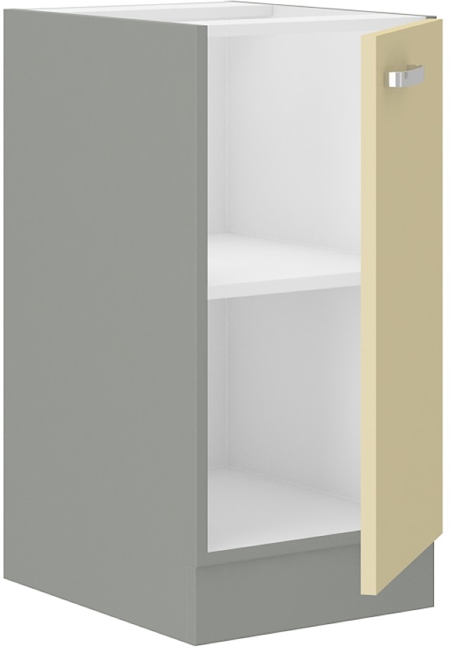 Kuchyňská skříňka STRAKOŠ K-CREAM K-5 - moderní dřevěná kuchyňská skříňka je určena k vybavení vašich kuchyní a jídelen. Lze ji použít jako spodní skříňku při sestavování kuchyňské linky. Skříňka je bez horní (pracovní) desky, kterou lze doobjednat zvlášť. Dvířka jsou opatřeny panty s tlumičem tichého zavírání, můžete je instalovat jako pravé nebo levé.Skříňka je v barevné kombinaci světlé šedé (mat) Platinum Grey - korpus a krémové (vysoký lesk) - dvířka. Vnitřek skřínky je bílý. U úchytek se jedná o leštěný chromový kov, rozteč 128 mm, délka 135 mm.Skříňka je v rozměrech: 400 x 820 x 520 mm (Š x V x H)Kuchyňská skříňka je dodávána v demontu (1 balík), montáž je jednoduchá dle přiloženého návodu.Pro výběr pracovní desky klikněte zde: pracovní desky.Pro zobrazení všech komponentů klikněte zde: komponenty K-CREAM.Tyto dřevěné kuchyňské skříňky jsou vyrobeny z kvalitně opracované laminované dřevotřískové desky tl. 16 mm s 1 mm ABS hranou.
