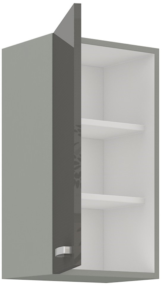 Kuchyňská skříňka STRAKOŠ GREYS G-16 - moderní dřevěná závěsná kuchyňská skříňka je určena k vybavení vašich kuchyní a jídelen. Lze ji použít jako horní skříňku při sestavování kuchyňské linky. Dvířka jsou opatřeny panty s tlumičem tichého zavírání, můžete je instalovat jako pravé nebo levé.Skříňka je v barevné kombinaci světlé šedé (mat) Platinum Grey - korpus a šedé (vysoký lesk) - dvířka. Vnitřek skřínky je bílý. U úchytek se jedná o leštěný chromový kov, rozteč 128 mm, délka 135 mm.Skříňka je v rozměrech: 400 x 715 x 310 mm (Š x V x H)Kuchyňská skříňka je dodávána v demontu (1 balík), montáž je jednoduchá dle přiloženého návodu.Pro zobrazení všech komponentů klikněte zde: komponenty GREYS.Skříňku lze objednat samostatně, nebo jako součást kuchyňské linky a rohové kuchyňské linky. Tyto dřevěné kuchyňské skříňky jsou vyrobeny z kvalitně opracované laminované dřevotřískové desky tl. 16 mm s 1 mm ABS hranou.