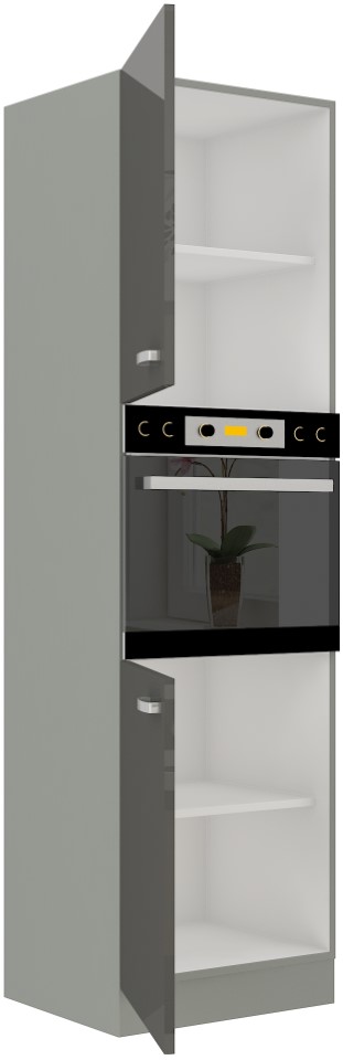Kuchyňská skříňka STRAKOŠ GREYS G-17 - moderní dřevěná kuchyňská skříňka je určena k vybavení vašich kuchyní a jídelen. Obsahuje 2 police a prostor pro umístění vestavné trouby. Lze ji použít jako jednu ze skříněk při sestavování kuchyňské linky. Dvířka jsou opatřeny panty s tlumičem tichého zavírání, můžete je instalovat jako pravé nebo levé, úchytky je možné namontovat vodorovně nebo svisle. Skříňka je v barevné kombinaci světlé šedé (mat) Platinum Grey - korpus a šedé (vysoký lesk) - dvířka. Vnitřek skříňky je bílý. U úchytek se jedná o leštěný chromový kov, rozteč 128 mm, délka 135 mm.Skříňka je v rozměrech: 600 x 2100 x 570 mm (Š x V x H)Kuchyňská skříňka je dodávána v demontu (2 balíky), montáž je jednoduchá dle přiloženého návodu.Pro zobrazení všech komponentů klikněte zde: komponenty GREYS.Tyto dřevěné kuchyňské skříňky jsou vyrobeny z kvalitně opracované laminované dřevotřískové desky tl. 16 mm s 1 mm ABS hranou.