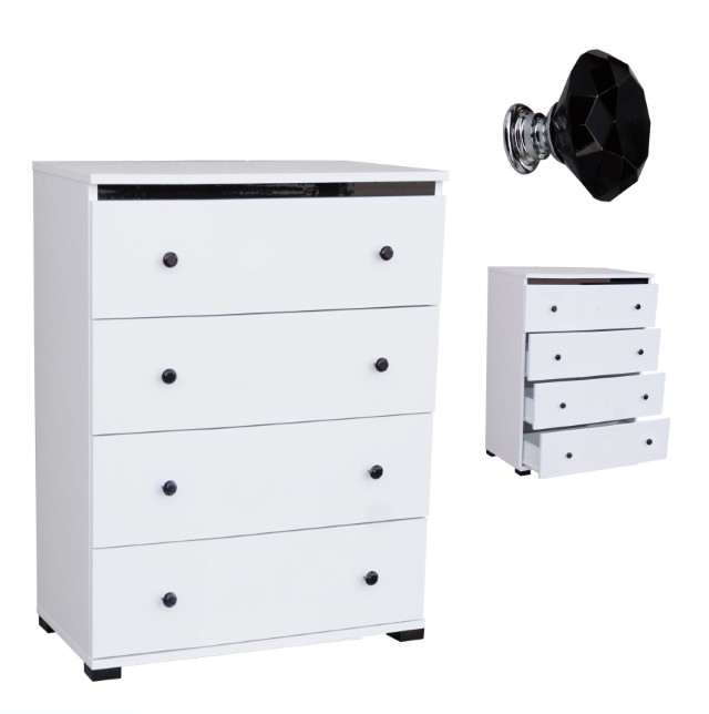 Komoda STRAKOŠ AK 018Komoda STRAKOŠ AK 018 s moderním designem ve stylu GLAMOUR je vyrobena z laminované desky o síle 18 mm s PVC hranami. Má ozdobnou lištu a kovové úchytky ve tvaru diamantu. Šuplíky lze plně vysunout.Je možné si vybrat ze tří modelů, a to s chromovanými doplňky, s černými doplňky nebo se zlatými doplňky.Rozměry: 70 x 100 x 40 cm (šířka x výška x hloubka)Komodu skvěle doplní další sortiment kolekce GLAMOUR - komody, noční stolky, kosmetický stolek a věšák. Komoda je dodávána v demontu, montáž je jednoduchá dle přiloženého návodu.Zobrazení barev se může lišit dle nastavení Vašeho elektronického zařízení a není důvodem k reklamaci.