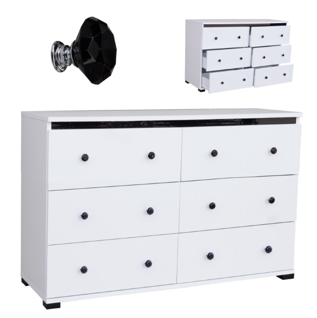Komoda STRAKOŠ AK 019Komoda STRAKOŠ AK 019 s moderním designem ve stylu GLAMOUR je vyrobena z laminované desky o síle 18 mm s PVC hranami. Má ozdobnou lištu a kovové úchytky ve tvaru diamantu. Šuplíky lze plně vysunout.Je možné si vybrat ze tří modelů, a to s chromovanými doplňky, s černými doplňky nebo se zlatými doplňky.Rozměry: 119 x 77 x 40 cm (šířka x výška x hloubka)Komodu skvěle doplní další sortiment kolekce GLAMOUR - komody, noční stolky, kosmetický stolek a věšák. Komoda je dodávána v demontu, montáž je jednoduchá dle přiloženého návodu.Zobrazení barev se může lišit dle nastavení Vašeho elektronického zařízení a není důvodem k reklamaci.