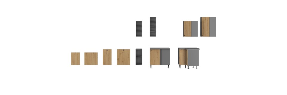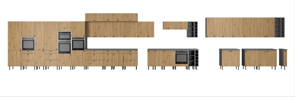 KUCHYŇSKÁ LINKA STRAKOŠ AVÁLIE Kuchyňská linka STRAKOŠ AVÁLIE spojuje praktičnost a moderní vzhled. Je ideální volbou do Vašich kuchyní nebo jídelen. Převážně oceníte množství úložného prostoru a mezi její největší přednosti patří kompaktní rozměry a výškově nastavitelné nožky spodních dvířek od 13,5 do 16 mm. Na první pohled Vás zaujme její design drážkovaných (lamelových) dvířek v dekoru dub artisan. Skládá se z 10 prvků, které si můžete libovolně poskládat dle Vašich představ a vytvořit tak jedinečnou sestavu kuchyňské linky. Konstrukce je vyrobena z vrstvené dřevotřískové laminátové desky (LTD) o tloušťce 16 mm v barevné kombinaci korpus antracit a dvířka dub artisan, vše v matném provedení. Zakončení hran ABS 1 mm, které slouží k ochraně proti mechanickému poškození a vzniku vlhkosti do materiálu. Konstrukce zadní části je tvořena HDF deskou o tloušťce 2,5 mm v bílém provedení. Dvířka a zásuvky jsou opatřeny systémem tichého dovírání/tichým dojezdem PREMIUM BOX. Při montáži dvířek si sami zvolíte stranu jejich otevírání (pravá, levá). Úchytky jsou černé kovové. Celková šířka kuchyňské linky je 260 cm. SESTAVA SE SKLÁDÁ Z NÁSLEDUJÍCÍCH DÍLŮ:1) Kuchyňská skříňka spodní dřezová STRAKOŠ AVÁLIE A-1 v rozměrech: šířka 80 cm, výška 87 cm, hloubka 52 cm 2) Kuchyňská skříňka spodní STRAKOŠ AVÁLIE A-8 v rozměrech: šířka 50 cm, výška 87 cm, hloubka 52 cm3) Kuchyňská skříňka spodní STRAKOŠ AVÁLIE A-43 v rozměrech: šířka 30 cm, výška 87 cm, hloubka 50 cm4) Kuchyňská skříňka spodní STRAKOŠ AVÁLIE A-4 v rozměrech: šířka 60 cm, výška 87 cm, hloubka 52 cm5) Kuchyňská skříňka spodní STRAKOŠ AVÁLIE A-9 v rozměrech: šířka 40 cm, výška 87 cm, hloubka 52 cm6) Kuchyňská skříňka vrchní STRAKOŠ AVÁLIE A-16 v rozměrech: šířka 80 cm, výška 71,5 cm, hloubka 31 cm7) Kuchyňská skříňka vrchní STRAKOŠ AVÁLIE A-26 v rozměrech: šířka 50 cm, výška 71,5 cm, hloubka 31 cm8) Kuchyňská skříňka vrchní STRAKOŠ AVÁLIE A-47 v rozměrech: šířka 30 cm, výška 71,5 cm, hloubka 29 cm9) Kuchyňská skříňka vrchní STRAKOŠ AVÁLIE A-20 v rozměrech: šířka 60 cm, výška 71,5 cm, hloubka 31 cm10 Kuchyňská skříňka vrchní STRAKOŠ AVÁLIE A-31 v rozměrech: šířka 40 cm, výška 71,5 cm, hloubka 31 cmSestava dodávána bez pracovní desky, dřezu, soklové lišty, kuchyňských spotřebičů a vodovodní baterie. Ke kuchyňské lince si můžete zvolit pracovní desku v libovolném odstínu, klikněte zde: PRACOVNÍ DESKY. Soklovou lištu k zakrytí nožek, klikněte zde: SOKLOVÁ LIŠTA. Dále si ke kuchyňské lince můžete zakoupit dřez, klikněte zde: DŘEZ. Prvky této kuchyňské linky lze zakoupit také samostatně. Kuchyňskou linku si můžete sestavit z jednotlivých dílů dle Vašich představ.Pro zobrazení komponentů klikněte zde: KOMPONENTY STRAKOŠ AVÁLIE. INFORMACE O BALENÍ: Sestava dodávána v demontu (rozloženém stavu) Součástí je montážní návod včetně potřebných spojovacích materiálů Celkový počet balíků - 18 ks ÚDRŽBA: Sestava je z laminovaného dřevotřískového materiálu, který je odolný a nenáročný na údržbu. Nábytek otírejte hadříkem navlhčeným šetrným a k tomu určeným čistícím prostředkem. Skutečná barevnost odstínu se může lišit dle nastavení Vašeho elektrického zařízení a není důvodem k reklamaci.