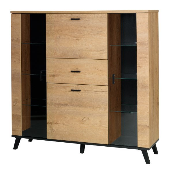 Komoda STRAKOŠ JO-N 3Komoda STRAKOŠ JO-N 3 se skvěle hodí jako součást obývací stěny STRAKOŠ JO-N, nebo i samostatně třeba v jídelně .Tato komoda je vyrobena z laminové desky tl.16mm v barvě Dub Lefkas / černá.Můžete si přiobjednat osvětlení polic, které dodá na eleganci. Rozměry : výška 131 cm, šířka 131 cm, hloubka 40 cm.Počet balíků : 2Zde se můžete podívat na tuto komodu jako součást obývací stěny STRAKOŠ JO-N 02. Je možné si doobjednat další komponenty STRAKOŠ JO-N a poskládat si tak vlastní sestavu.Nábytek je dodáván v demontu, montáž je jednoduchá dle přiloženého plánku.
