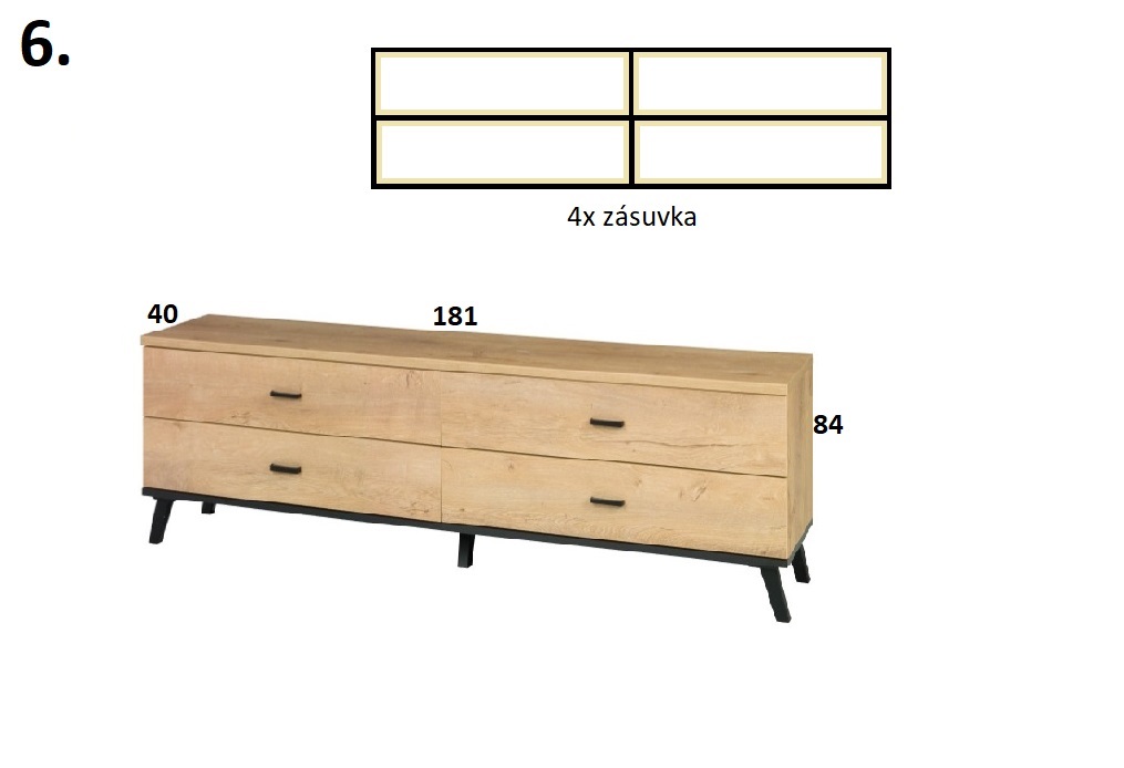 TV stolek STRAKOŠ JO-N 6TV stolek STRAKOŠ JO-N 6 se skvěle hodí jako součást obývací stěny STRAKOŠ JO-N.Lze použít jako komoda / odkládací stolek v jídelně, předsíni nebo v ložnici.Tento stolek je vyroben z laminové desky tl.16mm v barvě Dub Lefkas / černá. Rozměry : výška 50 cm, šířka 181 cm, hloubka 40 cm.Počet balíků : 2Zde se můžete podívat na tento TV stolek jako součást obývací stěny STRAKOŠ JO-N 03. Je možné si doobjednat další komponenty STRAKOŠ JO-N a poskládat si tak vlastní sestavu.Nábytek je dodáván v demontu, montáž je jednoduchá dle přiloženého plánku.