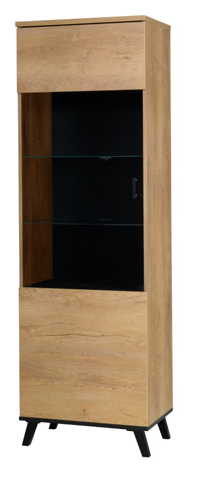 Vitrína STRAKOŠ JO-N 2Vitrína STRAKOŠ JO-N 2 se skvěle hodí jako součást obývací stěny STRAKOŠ JO-N, nebo i samostatně třeba v jídelně .Tato vitrína je vyrobena z laminové desky tl.16mm v barvě Dub Lefkas / černá. Můžete si vybrat Levé nebo Pravé provedení a osvětlení polic, které dodá na eleganci. Rozměry : výška 191 cm, šířka 61 cm, hloubka 40 cm.Počet balíků : 2Zde se můžete podívat na tuto vitrínu jako součást obývací stěny STRAKOŠ JO-N 01 a obývací stěny STRAKOŠ JO-N 03. Je možné si doobjednat další komponenty STRAKOŠ JO-N a poskládat si tak vlastní sestavu.Nábytek je dodáván v demontu, montáž je jednoduchá dle přiloženého plánku.