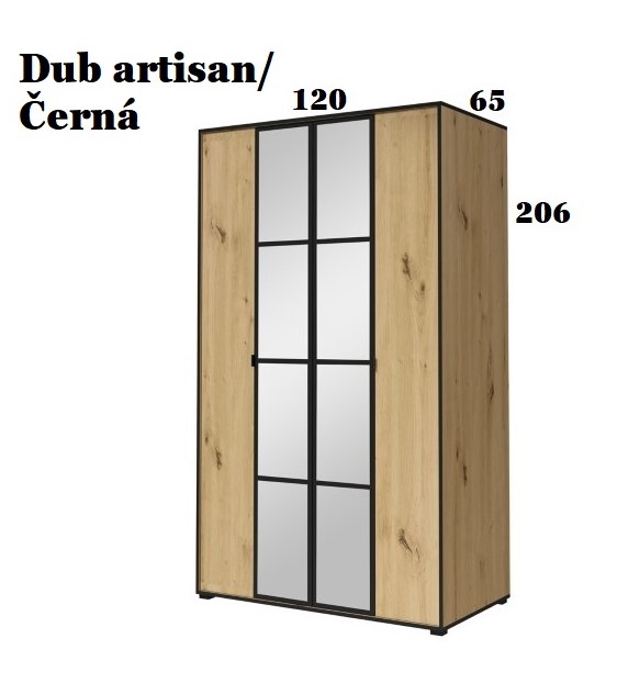 Skříň STRAKOŠ OSL1Skříň STRAKOŠ OSL1 je určena k vybavení vašich ložnic, pokojů, dětských pokojů, chodeb, šaten, ale i hotelových pokojů.Tato skříň je vyrobena z laminové desky tl.16mm v barvě Bílá nebo Dub artisan s černým orámováním.Rozměry : výška 206 cm, šířka 120 cm, hloubka 65 cm.Otevírání: 4x dveře (2x zrcadlo)Počet balíků : 3 Tato skříň OSL1 je také v šířce 150 cm a 180 cm.Nábytek je dodáván v demontu, montáž je jednoduchá dle přiloženého plánku.