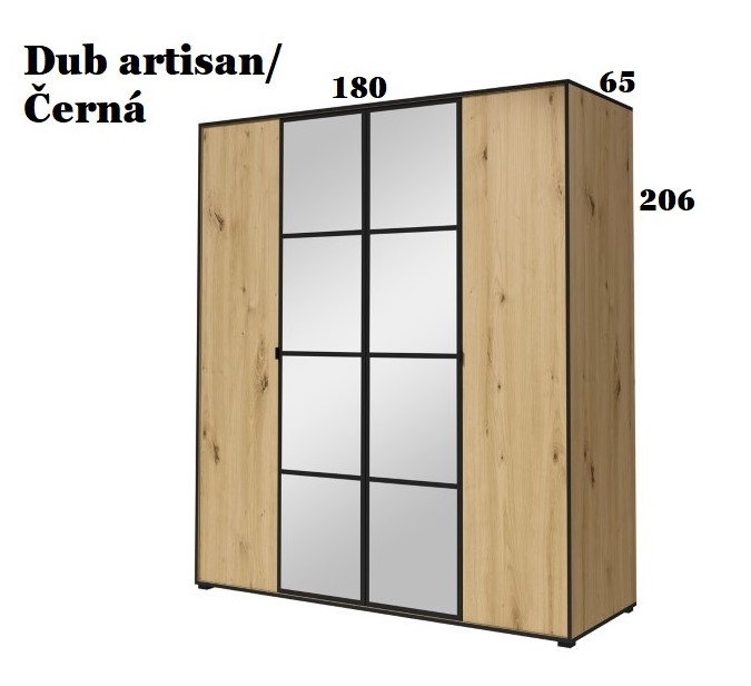 Skříň STRAKOŠ OSL1Skříň STRAKOŠ OSL1 je určena k vybavení vašich ložnic, pokojů, dětských pokojů, chodeb, šaten, ale i hotelových pokojů.Tato skříň je vyrobena z laminové desky tl.16mm v barvě Bílá nebo Dub artisan s černým orámováním.Rozměry : výška 206 cm, šířka 180 cm, hloubka 65 cm.Otevírání: 4x dveře (2x zrcadlo)Počet balíků : 3 Tato skříň OSL1 je také v šířce 120 cm a 150 cm.Nábytek je dodáván v demontu, montáž je jednoduchá dle přiloženého plánku.