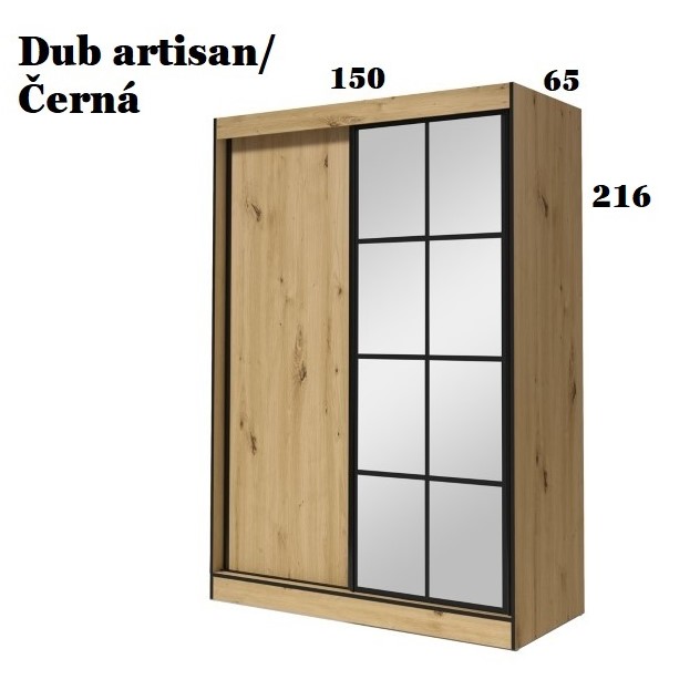 Skříň STRAKOŠ OSL2Skříň STRAKOŠ OSL2 je určena k vybavení vašich ložnic, pokojů, dětských pokojů, chodeb, šaten, ale i hotelových pokojů.Tato skříň je vyrobena z laminové desky tl.16mm v barvě Bílá nebo Dub artisan s černým orámováním.Rozměry : výška 216 cm, šířka 150 cm, hloubka 65 cm.Otevírání: 2x posuvné ( 1x zrcadlo)Počet balíků : 3 Tato skříň OSL2 je také v šířce 120 cm a 180 cm.Nábytek je dodáván v demontu, montáž je jednoduchá dle přiloženého plánku.