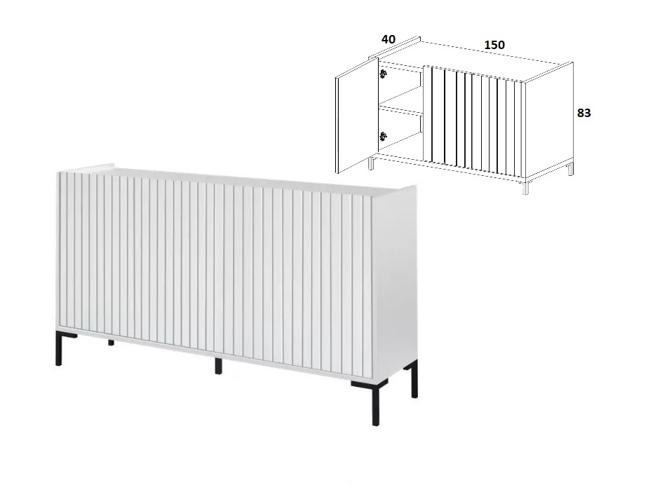 Komoda STRAKOŠ LA-DO 2Komoda STRAKOŠ LA-DO 2 je určena k vybavení Vašich ložnic, pokojů, chodeb, šaten, ale i hotelových pokojů.Zaujme svým unikátním lamelovým dojmem, bez úchytek, ale zároveň s velkým úložným prostorem.Tato komoda má černé kovové nohy, je vyrobena z laminové desky tl.16mm v barvě Bílá , Černá a kombinace Dub Artisan s černou.Rozměry : výška 83 cm, šířka 150 cm, hloubka 40 cm.Počet balíků : 2Je možné si doobjednat další komponenty STRAKOŠ LA-DO a vytvořit si tak vlastní sestavu. Nábytek je dodáván v demontu, montáž je jednoduchá dle přiloženého plánku.