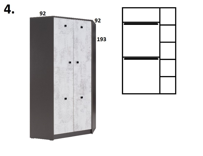 Dětský / Studentský pokoj STRAKOŠ TOM-Y 02Sestava STRAKOŠ TOM-Y je jednou z moderních a multifunkčních sestav. Je vhodná do menších pokojů, kde využijete mnoho úložného prostoru, ale zároveň se hodí i do prostornějších pokojů. Skládá se z 6 prvků, které jsou volně rozložitelné v prostoru, tím se dokonale přizpůsobí Vašemu interiéru.Skvěle se hodí pro mladistvý styl, ale zaujme kdekoli.Tento nábytek je vyroben z laminové desky v kombinovaných barvách grafit / enigma . SESTAVA SE SKLÁDÁ Z NÁSLEDUJÍCÍCH DÍLŮ:Skříň rohová STRAKOŠ TOM-Y 4 v rozměrech: výška 193 cm, šířka 92 cm, hloubka 92 cm (balík-3)Regál STRAKOŠ TOM-Y 5 v rozměrech: výška 193 cm, šířka 50 cm, hloubka 42 cm (balík-2) Regál STRAKOŠ TOM-Y 6 v rozměrech: výška 193 cm, šířka 42 cm, hloubka 42 cm (balík-2) Komoda STRAKOŠ TOM-Y 11 v rozměrech: výška 97 cm, šířka 90 cm, hloubka 37 cm (balík-1)Psací stůl STRAKOŠ TOM-Y 18 v rozměrech: výška 77 cm, šířka 130 cm, hloubka 60 cm (balík-2) Postel STRAKOŠ TOM-Y 20 v rozměrech: výška 63 cm, šířka 96 cm, délka 205 cm (balík-3) Postel je dodávána včetně roštu, bez matrace, kterou můžete objednat zde: MATRACEPrvky této sestavy STRAKOŠ TOM-Y lze zakoupit také samostatně.Díky velkému výběru komponentů, si můžete sestavit Vaše pokoje dle Vašich představ.Pro zobrazení komponentů klikněte zde: KOMPONENTY STRAKOŠ TOM-YINFORMACE O BALENÍ:Sestava dodávána v demontu (rozloženém stavu)Součástí je montážní návod včetně potřebných spojovacích materiálůCelkový počet balíků: 13ÚDRŽBA:Sestava je z laminovaného dřevotřískového materiálu, který je odolný a nenáročný na údržbu. Nábytek otírejte hadříkem navlhčeným šetrným a k tomu určeným čistícím prostředkem.Skříň rohová STRAKOŠ TOM-Y 4