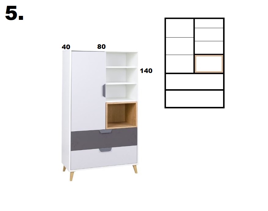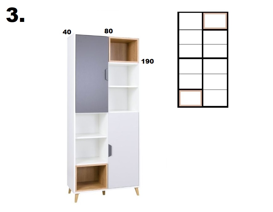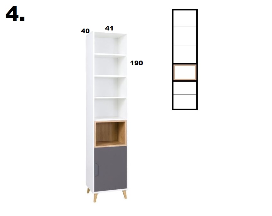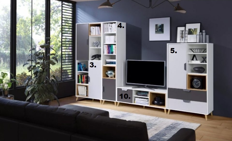 Obývací stěna STRAKOŠ JOK-RObývací stěna STRAKOŠ JOK-R je jednou z moderních a multifunkčních sestav. Je vhodná do menších pokojů, kde využijete mnoho úložného prostoru, ale zároveň se hodí i do prostornějších pokojů. Skládá se ze 4 prvků, které jsou volně rozložitelné v prostoru, tím se dokonale přizpůsobí Vašemu interiéru.Skvěle se hodí pro mladistvý styl, ale zaujme kdekoli, díky elegantním nožkám.Tento nábytek je vyroben z laminové desky v kombinovaných barvách bílá / grafit / světlé šedá / dub lefkas.SESTAVA SE SKLÁDÁ Z NÁSLEDUJÍCÍCH DÍLŮ:Regál STRAKOŠ JOK-R 3 v rozměrech: výška 190 cm, šířka 80 cm, hloubka 40 cm (balík-2)Regál STRAKOŠ JOK-R 4 v rozměrech: výška 190 cm, šířka 41 cm, hloubka 40 cm (balík-1)Regál STRAKOŠ JOK-R 5 v rozměrech: výška 140 cm, šířka 80 cm, hloubka 40 cm (balík-1)TV stolek STRAKOŠ JOK-R 10 v rozměrech: výška 43 cm, šířka 120 cm, hloubka 40 cm (balík-)Prvky této sestavy lze zakoupit také samostatně.Ze systémové sestavy STRAKOŠ JOK-R je možné sestavit také studentský / dětský pokoj.Díky velkému výběru komponentů, si můžete sestavit Vaše pokoje dle Vašich představ.Pro zobrazení komponentů klikněte zde: KOMPONENTY STRAKOŠ JOK-RINFORMACE O BALENÍ:Sestava dodávána v demontu (rozloženém stavu)Součástí je montážní návod včetně potřebných spojovacích materiálůCelkový počet balíků: 5ÚDRŽBA:Sestava je z laminovaného dřevotřískového materiálu, který je odolný a nenáročný na údržbu. Nábytek otírejte hadříkem navlhčeným šetrným a k tomu určeným čistícím prostředkem.