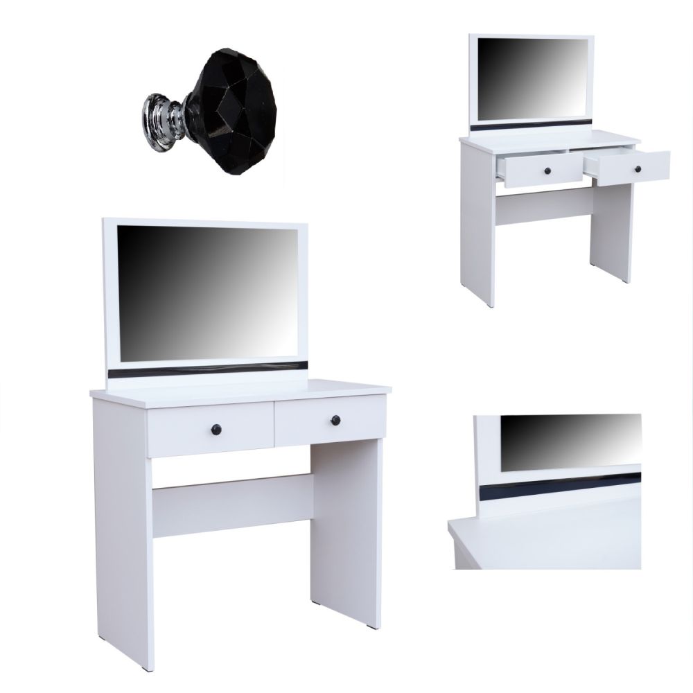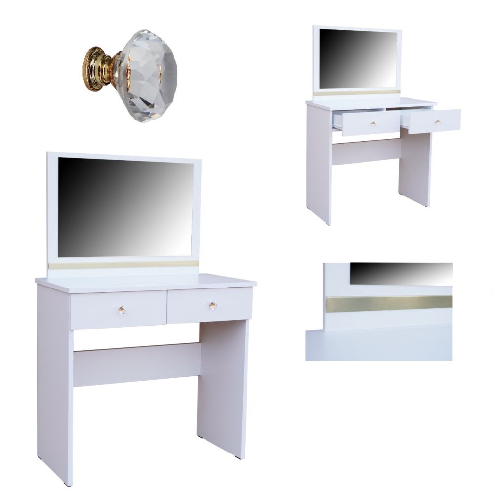 Kosmetický stolek STRAKOŠ AT 737Kosmetický stolek STRAKOŠ AT 737 s moderním designem ve stylu GLAMOUR je vyroben z laminované desky o síle 18 mm s PVC hranami. Má ozdobnou lištu a kovové úchytky ve tvaru diamantu. Šuplíky lze plně vysunout.Je možné si vybrat ze tří modelů, a to s chromovanými doplňky, s černými doplňky nebo se zlatými doplňky.Rozměry: 80 x 125 x 40 cm (šířka x výška x hloubka)Kosmetický stolek skvěle doplní další sortiment kolekce GLAMOUR - komody, noční stolky a věšák. Stolek je dodáván v demontu, montáž je jednoduchá dle přiloženého návodu.Zobrazení barev se může lišit dle nastavení Vašeho elektronického zařízení a není důvodem k reklamaci.