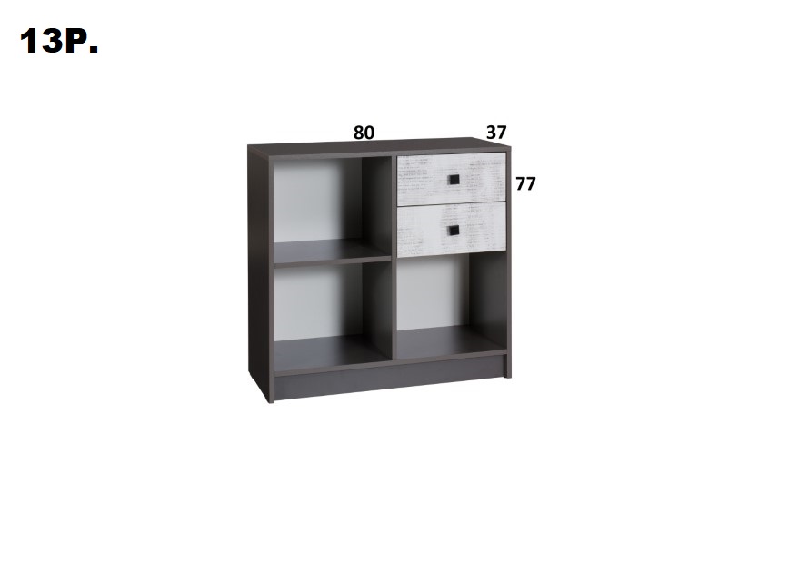 Regál STRAKOŠ TOM-Y 13Regál STRAKOŠ TOM-Y 13 je součástí studentského / dětského pokoje v systémové sestavě STRAKOŠ TOM-Y.Regál lze použít i samostatně. Můžete jej využít i do hotelových pokojů či penzionů.Tento regál je vyroben z laminové desky v kombinovaných barvách grafit / enigma. Provedení : Levé / PravéRozměry : výška 77 cm, šířka 80 cm, hloubka 37 cm.Počet balíků : 1 Je možné si doobjednat další komponenty STRAKOŠ TOM-Y a poskládat si tak vlastní sestavu.Nábytek je dodáván v demontu, montáž je jednoduchá dle přiloženého plánku.