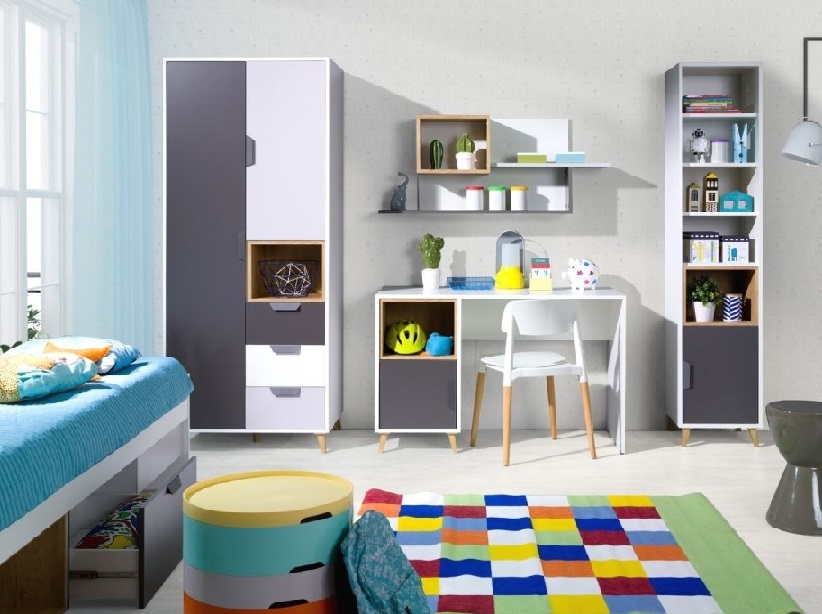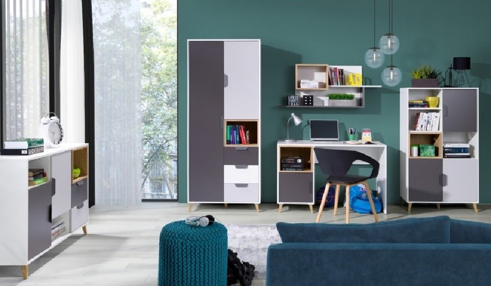 Skříň STRAKOŠ JOK-R 2Skříň STRAKOŠ JOK-R 2 je součástí studentského / dětského pokoje v systémové sestavě STRAKOŠ JOK-R.Lze ji použít i samostatně. Můžete JI využít i do hotelových pokojů či penzionů.Tato skříň je vyrobena z laminové desky v kombinovaných barvách bílá / grafit / světle šedá / dub lefkas.Rozměry : výška 190 cm, šířka 80 cm, hloubka 55 cm.Počet balíků : 2 Je možné si doobjednat další komponenty STRAKOŠ JOK-R a poskládat si tak vlastní sestavu.Nábytek je dodáván v demontu, montáž je jednoduchá dle přiloženého plánku.