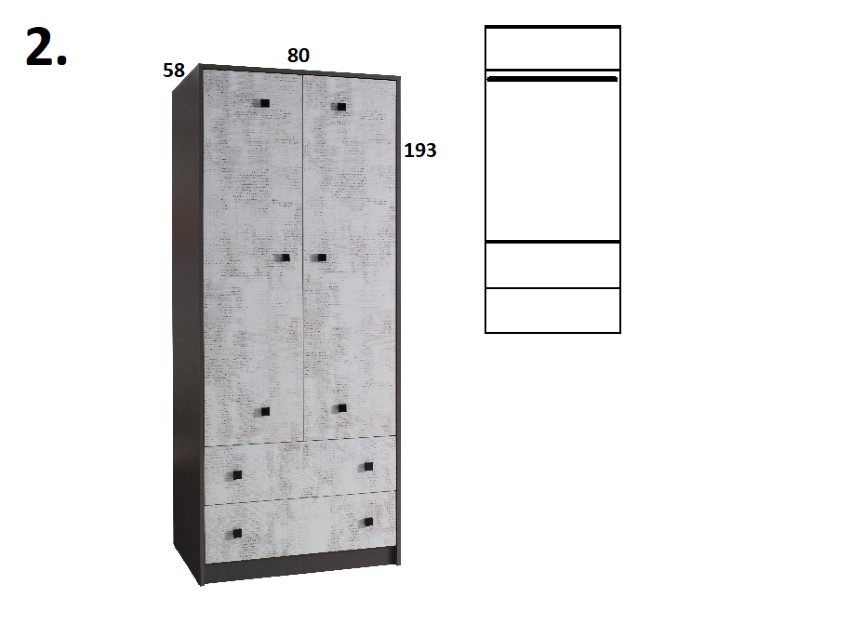 Skříň STRAKOŠ TOM-Y 2Skříň STRAKOŠ TOM-Y 2 je součástí studentského / dětského pokoje v systémové sestavě STRAKOŠ TOM-Y.Lze ji použít i samostatně. Můžete JI využít i do hotelových pokojů či penzionů.Tato skříň je vyrobena z laminové desky v kombinovaných barvách grafit / enigma.Rozměry : výška 193 cm, šířka 80 cm, hloubka 58 cm.Počet balíků : 2 Je možné si doobjednat další komponenty STRAKOŠ TOM-Y a poskládat si tak vlastní sestavu.Nábytek je dodáván v demontu, montáž je jednoduchá dle přiloženého plánku.