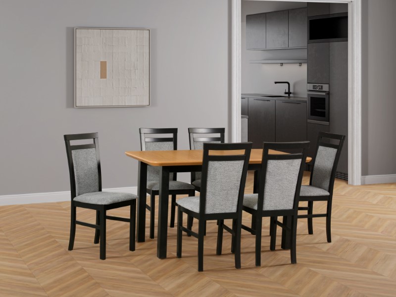 Jídelní set STRAKOŠ WE II-S a M V je vhodný pro 4-10 osob, je sestaven z rozkládacího stolu STRAKOŠ WE II-S a 6-ti židlí STRAKOŠ M V. Je možné si dokoupit libovolné množství židlí. Stůl STRAKOŠ WE II-S je stůl rozkládací určený do restaurací, hotelů i domácností. Tento rozkládací stůl je pevný a stabilní. Je v rozměrech, délka ve složeném stavu 140 cm a v rozloženém stavu je 180 cm, šířka stolu 80 cm a výška stolu je 76 cm. Konstrukce stolu je vyrobena z bukového dřeva a deska stolu z dubové dýhy. Stůl má obdélníkový tvar se zaoblenými hranami. Židle STRAKOŠ M V je židle do restaurací, hotelů i domácností. Je velice pevná a také přiměřeně lehká cca 5 kg. Tato židle je v rozměrech, výška opěradla 93 cm, výška sedací plochy židle je 47 cm, hloubka je 40 cm, šířka židle je 43 cm. Židle M V je vyrobena z masívu bukového dřeva. Jídelní set Vám umíme dodat v libovolné barevné kombinaci dle dostupných variant. Zobrazení barev se může lišit dle nastavení Vašeho elektronického zařízení a není důvodem k reklamaci. Set je dodáván v celku, pouze nohy stolu jsou demontovány.