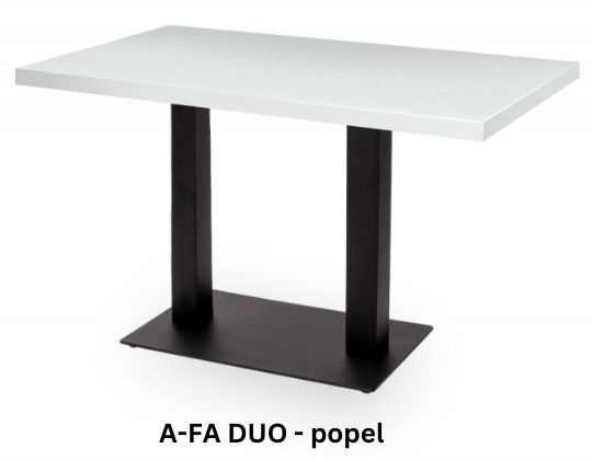 Kavárenský stůl STRAKOŠ A-FA DUO - dýha je vytvořen s ohledem na intenzivní používání ve venkovních i vnitřních prostorách. Hodí se do pivních zahrádek, restaurací a kaváren, kde je odolnost a stabilita nábytku rozhodující pro zajištění pohodlí a bezpečnosti hostů.Stůl A-FA je vyroben z nejkvalitnější oceli, která je následně pokryta vrstvou práškové barvy. Stůl díky tomuto procesu získává nejen na estetice, ale především na zvýšené odolnosti proti poškrábání a poškození, což je v místech s vysokou návštěvností neocenitelné. Podnož stolu je navíc chráněna proti korozi, díky čemuž je stůl ideální volbou pro venkovní použití, kde je vystaven měnícím se povětrnostním podmínkám.Stůl A-FA byl navržen s ohledem na maximální stabilitu. Základna je k dispozici ve třech barvách – černé, bílé a šedé – což umožňuje její přizpůsobení různým prostorovým uspořádáním, od klasických po modernější. Největší výhodou stolu A-FA je však použití inovativního systému, který zvyšuje stabilitu. Díky tomuto řešení i při intenzivním používání zůstává deska stolu nehybná a stabilní, čímž odpadá nepříjemné klouzání či houpání.Tloušťka desky je 38 mm. Rozměry základny jsou 40x70 cm.K tomuto stolu jsou vhodné tyto zahradní nebo kavárenské židle.