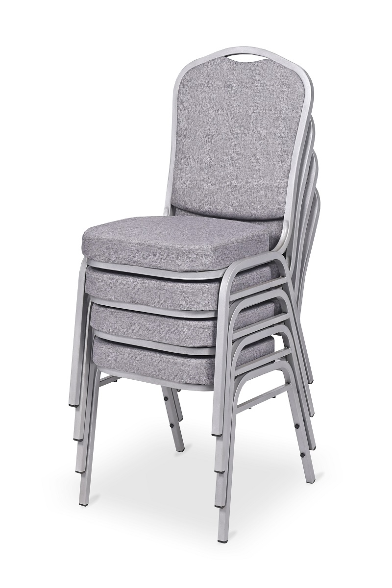 Konferenční stohovatelná židle STRAKOŠ SE 121 má ocelový rám ve stříbrné barvě s práškovým nástřikem. Hladké, světlé čalounění v módní šedé barvě poskytuje elegantní vzhled. Díky univerzálním barvám se židle skvěle hodí do různých typů interiérů. Sedák židle zaručuje pohodlí a komfort sezení při dlouhých jednáních. Židle SE 121 jsou díky použitým vysoce kvalitním komponentům ideální pro banketové a konferenční použití. Námi nabízené židle jsou určeny pro komerční využití, proto je uvedený model vybaven speciálními nárazníky chránícími rám při stohování a praktickým madlem na opěrce pro snadné přenášení. Nohy jsou vybaveny speciálními krytkami chránícími podlahu před poškrábáním.Židle je v rozměrech: celková výška 89 cm, šířka 44 cm, hloubka 54 cm, hloubka sedací plochy 40 cm, výška k sedu 46 cm (sedák tl. 5,5 cm), váží cca 5,5 kg.Rám židle:-pevný ocelový rám 19x19 mm s tloušťkou stěny 1 mm zaručuje bezpečnost používání-práškové lakování chrání židli před poškrábáním a odlupováním barvy. Sedadlo židle:-výška 5,5 cm zaručuje pohodlí při používání-sedák je vyroben z nesedající pěny Funkčnost:-stohování až 18 kusů šetří místo při skladování-zatížení do 200 kg-praktická rukojeť usnadňuje držení a přemisťování židle K těmto židlím jsou vhodné tyto potahy.