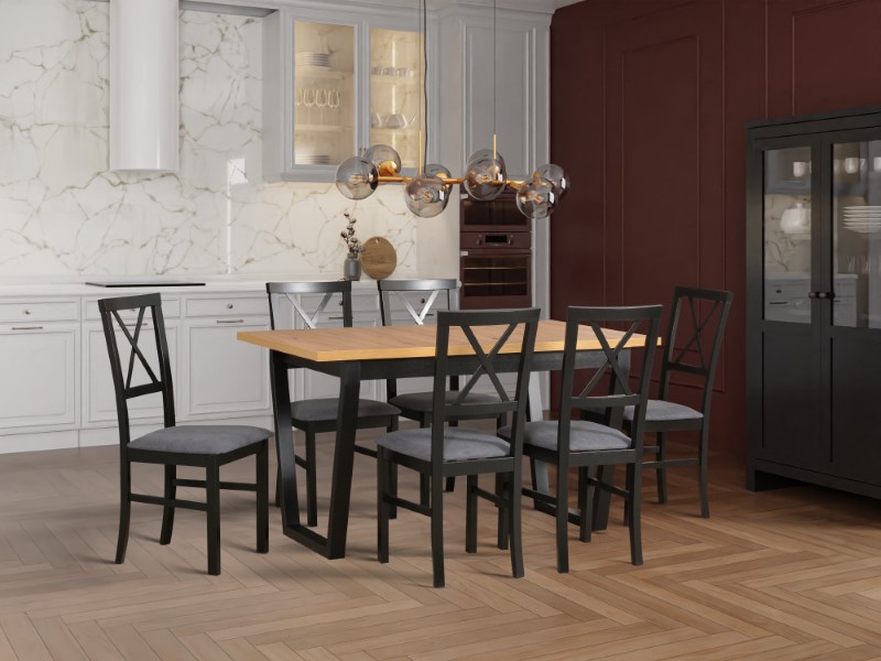 Jídelní set STRAKOŠ IK II a M IV je vhodný pro 4-8 osob, je sestaven z rozkládacího stolu STRAKOŠ IK II a 6-ti židlí STRAKOŠ M IV. Je možné si dokoupit libovolné množství židlí. Stůl STRAKOŠ IK II je stůl rozkládací v rozměrech, délka ve složeném stavu 140 cm , v rozloženém stavu je 180 cm, šířka stolu 80 cm a výška stolu je 77 cm. Konstrukce stolu je vyrobena z pevné oceli s práškovým nástřikem v černé barvě. Deska stolu tloušťky 3,2 cm je z lamina. Židle STRAKOŠ M IV je židle do restaurací, hotelů i domácností. Je velice pevná a také přiměřeně lehká cca 5 kg. Tato židle je v rozměrech, výška opěradla 93 cm, výška sedací plochy židle s čalouněným sedákem je 47 cm (s lakovaným ne čalouněným sedákem 44 cm), hloubka je 40 cm, šířka židle je 43 cm. Židle M IV je vyrobena z masívu bukového dřeva. Jídelní set Vám umíme dodat v libovolné barevné kombinaci dle dostupných variant. Zobrazení barev se může lišit dle nastavení Vašeho elektronického zařízení a není důvodem k reklamaci. Set je dodáván v celku, pouze nohy stolu jsou demontovány.