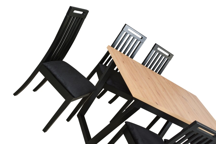 Jídelní set STRAKOŠ IK II a R X je vhodný pro 4-8 osob, je sestaven z rozkládacího stolu STRAKOŠ IK II a 6-ti židlí STRAKOŠ R X. Je možné si dokoupit libovolné množství židlí. Stůl STRAKOŠ IK II je stůl rozkládací v rozměrech, délka ve složeném stavu 140 cm , v rozloženém stavu je 180 cm, šířka stolu 80 cm a výška stolu je 77 cm. Konstrukce stolu je vyrobena z pevné oceli s práškovým nástřikem v černé barvě. Deska stolu tloušťky 3,2 cm je z lamina. Židle STRAKOŠ R X je židle do restaurací, hotelů i domácností. Tato židle je velice pevná a také přiměřeně lehká cca 5 kg. Tato židle je v rozměrech, výška opěradla 96 cm, výška sedací plochy židle je 47 cm, hloubka je 41 cm, šířka židle je 45 cm. Židle R X je vyrobena z masívu bukového dřeva. Jídelní set Vám umíme dodat v libovolné barevné kombinaci dle dostupných variant.Zde je tento set ve variantě se 4-mi židlemi. Zobrazení barev se může lišit dle nastavení Vašeho elektronického zařízení a není důvodem k reklamaci. Set je dodáván v celku, pouze nohy stolu jsou demontovány.