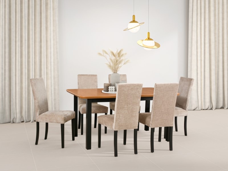 Jídelní set STRAKOŠ WE V-S a R II je vhodný pro 4-6 osob, je sestaven z rozkládacího stolu STRAKOŠ WE V-S a 6-ti židlí STRAKOŠ R II. Je možné si dokoupit libovolné množství židlí. Stůl STRAKOŠ WE V-S je stůl rozkládací určený do restaurací, hotelů i domácností. Tento rozkládací stůl je pevný a stabilní. Je v rozměrech, délka ve složeném stavu 160 cm a v rozloženém stavu je 200 cm, šířka stolu 90 cm a výška stolu je 76 cm. Konstrukce stolu je vyrobena z bukového dřeva. Deska stolu je z lakovaného MDF v bílé barvě nebo v dýze v odstínu ořech, kaštan a dub přírodní. Stůl má obdélníkový tvar se zaoblenými hranami. Židle STRAKOŠ R II je židle do restaurací, hotelů i domácností. Tato židle je velice pevná a také přiměřeně lehká cca 6 kg. Tato židle je v rozměrech, výška opěradla 97 cm, výška sedací plochy židle je 48 cm, hloubka je 41 cm, šířka židle je 45 cm. Židle je vyrobena z masívu bukového dřeva. Jídelní set Vám umíme dodat v libovolné barevné kombinaci dle dostupných variant. Zobrazení barev se může lišit dle nastavení Vašeho elektronického zařízení a není důvodem k reklamaci. Set je dodáván v celku, pouze nohy stolu jsou demontovány.