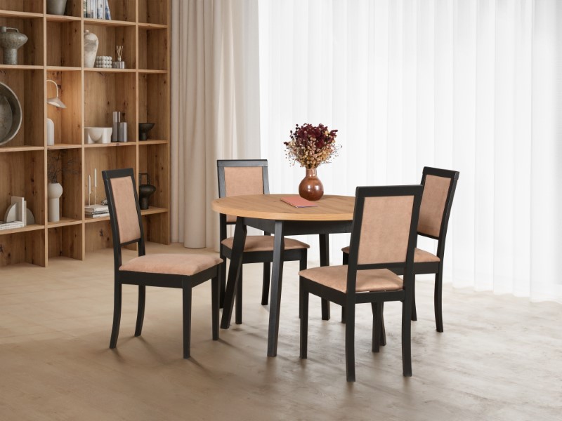 Jídelní set STRAKOŠ OS III-L a R XIII je vhodný pro 2-4 osoby, je sestaven ze stolu STRAKOŠ OS III-L a 4 židlí STRAKOŠ R XIII. Je možné si dokoupit libovolné množství židlí. Stůl STRAKOŠ OS III-L je stůl rozkládací určený do restaurací, hotelů i domácností. Tento stůl je pevný a stabilní. je v rozměrech, délka 100 cm, po rozložení 130 cm, šířka 100 cm a výška je 75 cm. Konstrukce stolu je vyrobena z bukového dřeva a deska stolu z lamina. Židle STRAKOŠ R XIII je židle do restaurací, hotelů i domácností. Tato židle je v rozměrech, výška opěradla 93 cm, výška sedací plochy 47 cm, šířka 47 cm, hloubka 43 cm, váha židle 6 kg. Tuto židli Vám umíme dodat v libovolné barevné kombinaci dle dostupných variant. Jídelní set Vám umíme dodat v libovolné barevné kombinaci dle dostupných variant. Zobrazení barev se může lišit dle nastavení Vašeho elektronického zařízení a není důvodem k reklamaci. Set je dodáván v celku, pouze nohy stolu jsou demontovány.