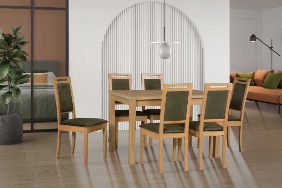 Jídelní set STRAKOŠ MO I a R XV je vhodný pro 4-8 osob, je sestaven z rozkládacího stolu STRAKOŠ MO I a 6 židlí STRAKOŠ R XV. Je možné si dokoupit libovolné množství židlí. Stůl STRAKOŠ MO I je stůl rozkládací určený do restaurací, hotelů i domácností. Tento rozkládací stůl je pevný a stabilní. Je v rozměrech, délka ve složeném stavu 140 cm a v rozloženém stavu je 180 cm, šířka stolu 80 cm a výška stolu je 78 cm. Konstrukce stolu je vyrobena z bukového dřeva a deska stolu z lamina. Stůl má obdélníkový tvar. Židle STRAKOŠ R XV je židle do restaurací, hotelů i domácností. Tato židle je v rozměrech, výška opěradla 96 cm, výška sedací plochy 47 cm, šířka 47 cm, hloubka 43 cm, váha židle 6 kg. Židle R V je vyrobena z masívu bukového dřeva. Jídelní set Vám umíme dodat v libovolné barevné kombinaci dle dostupných variant. Zobrazení barev se může lišit dle nastavení Vašeho elektronického zařízení a není důvodem k reklamaci. Set je dodáván v celku, pouze nohy stolu jsou demontovány.