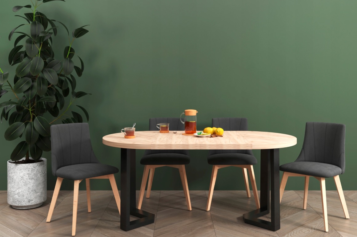 Jídelní stůl STRAKOŠ DSF 90/2 je stůl rozkládací určený do restaurací, hotelů i domácností. Konstrukce stolu je vyrobena z bukového dřeva. Deska stolu je z dýhy o průměru 90 cm, tloušťka desky 3,4 cm. Výška stolu je 76,5 cm. Rozměry stolu: ve složeném stavu je průměr 90 cm, ve stavu rozloženém jde o ovál délky 130 cm, nebo 170 cm (dva prodlužovací mezikusy po 40 cm), šířky 90 cm. Přídavnou desku nelze uschovat do konstrukce stolu. Desku a nohy stolu Vám umíme dodat v libovolném barevném provedení dle vzorníku. Vzhledem k tomu, že barevné provedení bílá je technologicky náročnější, je v tomto barevném provedení příplatek. Zobrazení barev se může lišit dle nastavení Vašeho elektronického zařízení a není důvodem k reklamaci. K tomuto stolu jsou vhodné tyto jídelní židle. Podívejte se také na tento stůl jako součást jídelního setu DSL 90 a DM61.