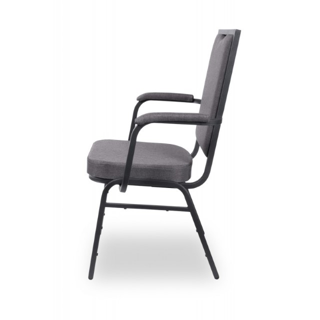 KONFERENČNÍ STOHOVATELNÁ ŽIDLE STRAKOŠ ST750 GRANDKonferenční stohovatelná židle STRAKOŠ ST750 GRAND dokonale prosvětlí tmavé místonosti díky světlému, šedému čalounění s vysokou odolností proti oděru. Hustý výplet a odpovídající hmotnost udrží židli v perfektním stavu po dlouhou dobu. Je stavěná na pevném ocelovém rámu s obdelníkovým opěradlem. Silný ocelový rám židle 20x20 mm s tloušťkou stěny 1,2 mm zaručuje stabilitu a bezpečnost při náročném používání. Rám židle je díky práškovému lakování a tepání chráněn před poškrábáním. Díky další vrstvě antičalounického laku je židle chráněna proti poškrábání holého kovu a odlupování barvy. Pohodlí Vám zaručí také pěnový sedák, který zaručí jeho tvar a pohodlí při dlouhých jednáních. Překližka o tloušťce 9 mm zabraňuje prasknutí sedáku při náhlém tlaku. Přídavný posilovací nosník pod sedám zajišťuje stabilitu a bezpečnost při používání. Židle je vybavena speciálními nárazníky pro orchranu rámu při stohování a praktickým madlem v opěrce pro snadné přenášení. Nohy jsou vybaveny speciálními nožičkami, které chrání podlahu před poškrábáním. Židle je nabízená pouze v černé barvě se zlatými puntíky.Židle jsou díky svému univerzálnímu vzhledu určeny převážně pro hotelový a restaurační průmysl. Zaručují stabilní a pevnou konstrukci díky použitým vysoce kvalitním komponentům. ROZMĚRY:Židle je v rozměrech: výška 92,5 cm, šířka 60, výška sedu 46 cm, šířka sedu 40 cm, hloubka sedu 41 cmNosnost: do 200 kgV naší nabídce máme i další typy konferenčních stohovatelných židlí, pro jejich zobrazení klikněte zde: KONFERENČNÍ STOHOVATELNÉ ŽIDLE STRAKOŠ.INFORMACE O BALENÍ:Konferenční stohovatelná židle STRAKOŠ ST750 GRAND je dodávána v celkuStohování až 17 kusůCelková hmotnost židle: 7,2 kgÚDRŽBA:Židle je vyrobena z vysoce kvalitních komponentů, které jsou odolné a nenáročné na údržbu.Židli otírejte hadříkem navlhčeným v čisté vodě.Skutečná barevnost odstínu se může lišit dle nastavení Vašeho elektrického zařízení a není důvodem k reklamaci.