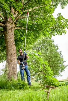 - Tento výškový prořezávač pracuje na principu řetězové pily a díky svému dodatečnému prodloužení se ideálně hodí k pohodlné péči o stromy až do pracovní výšky 4 metrů.