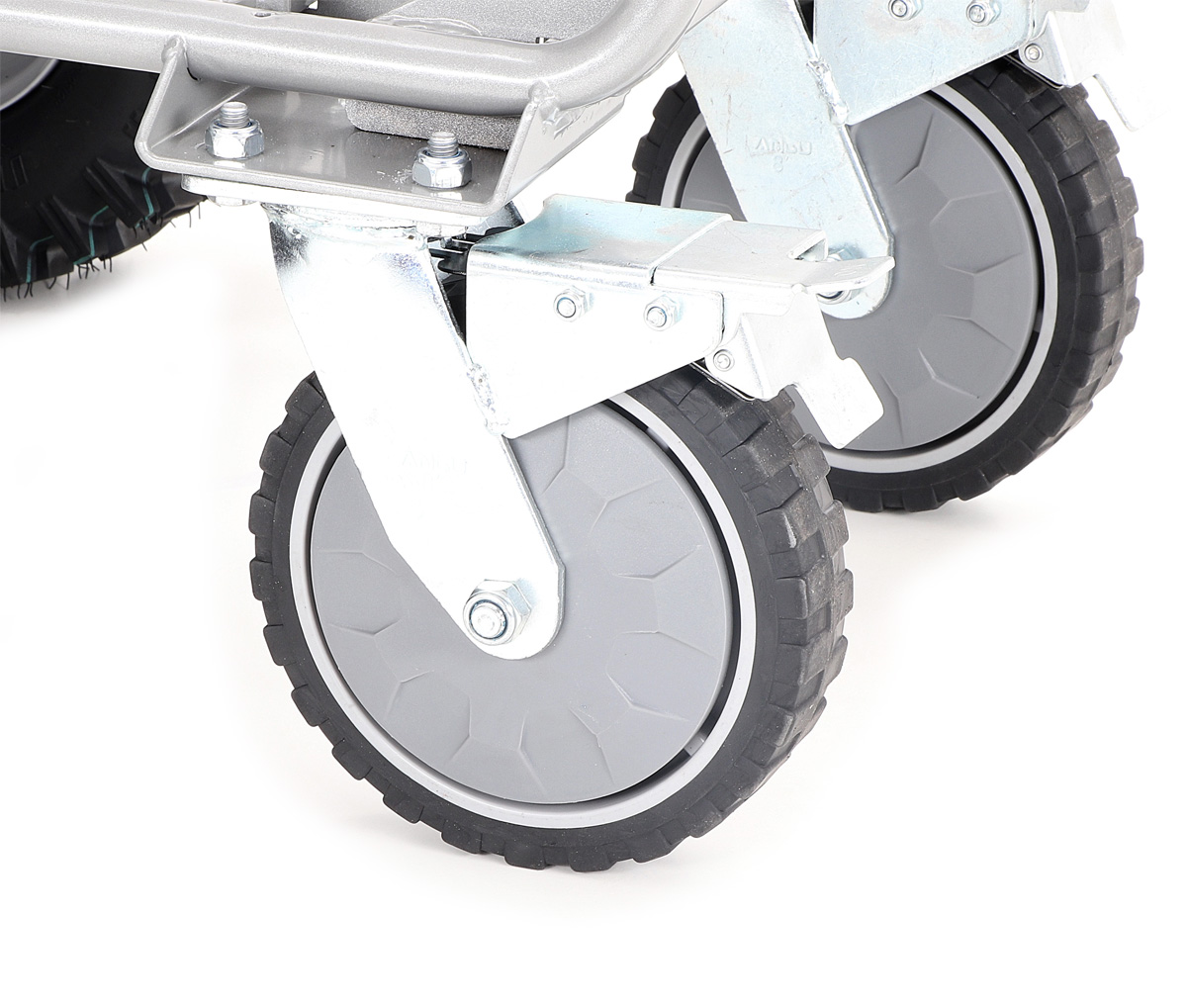 - Dvě otočná, uzamykatelná zadní kola zajišťují dobrou ovladatelnost a stabilitu při nakládání a vykládání. za všech okolností