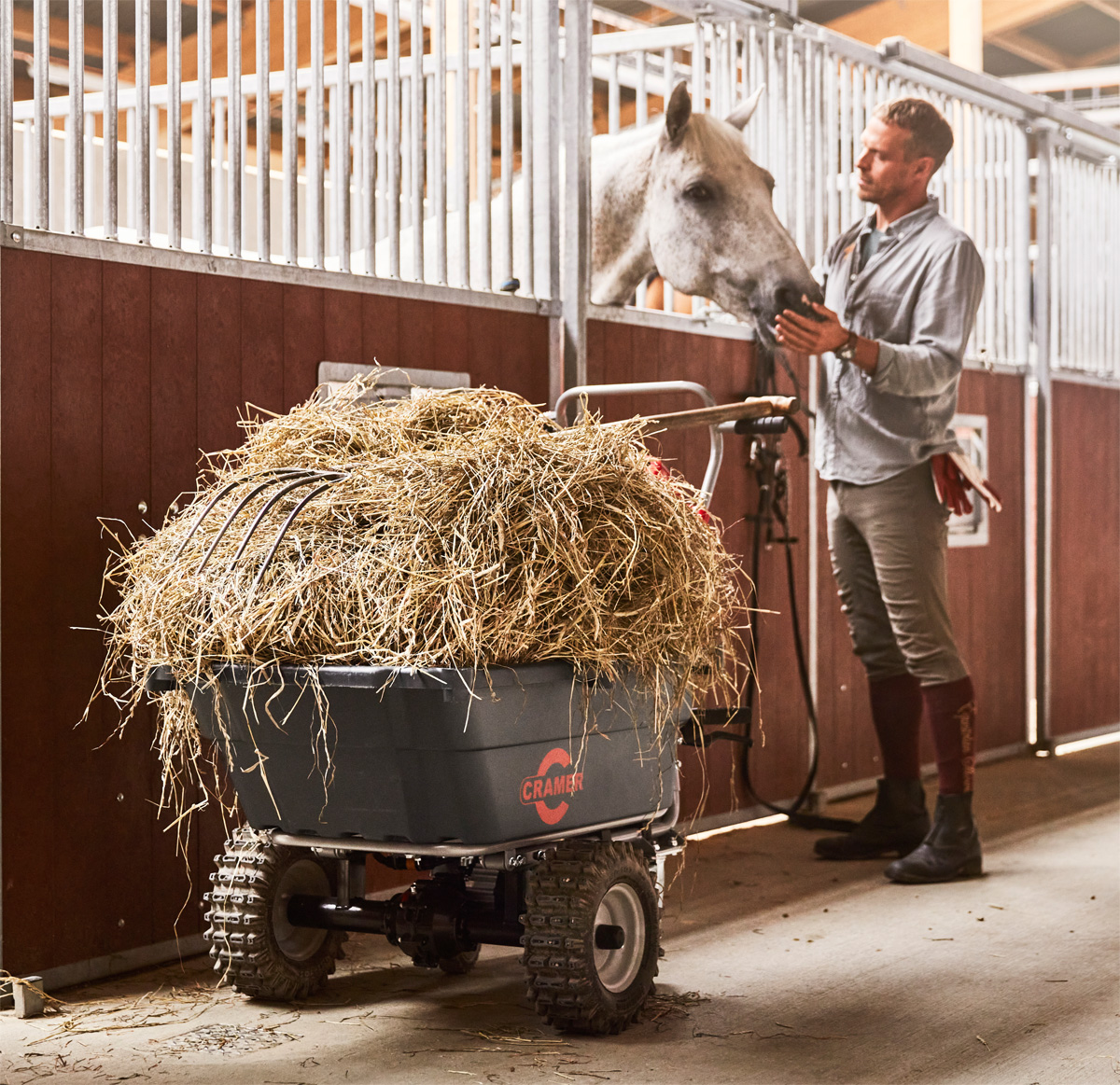 Pokud potřebujete přepravovat těžké nebo objemné předměty, jednoduše použijte extrémně stabilní bateriový motorový vozík Cramer 82V. Díky čtyřem kolům je velmi robustní a poskytuje úlevu pro vaše paže a záda, zejména na svazích a plošinách. Pro větší pohodlí a snadnou manipulaci lze návěs naklápět pomocí plynové tlakové pružiny. Díky bezkomutátorovému elektromotoru přepraví bateriový užitkový vozík vše bez hluku a emisí.